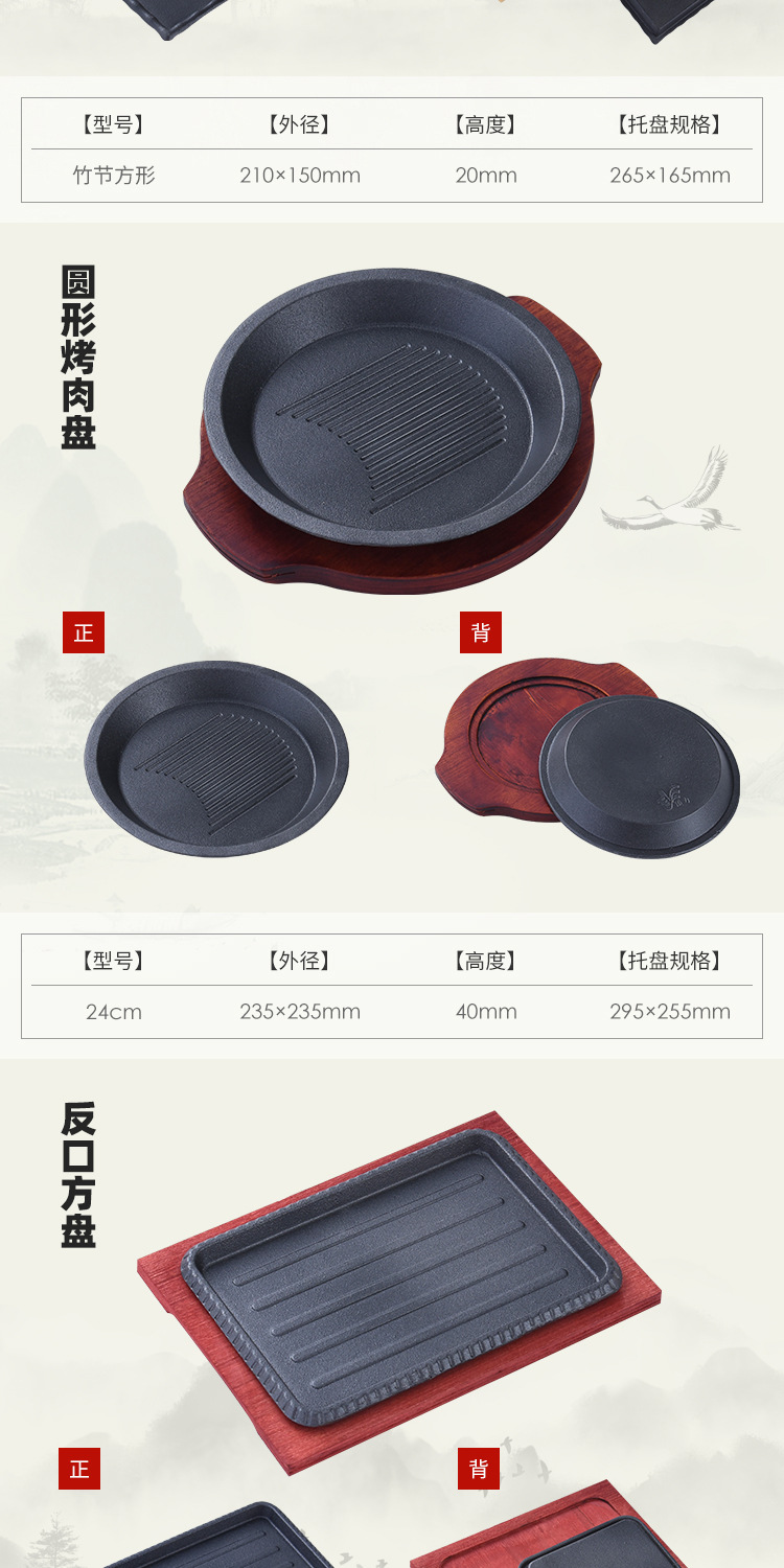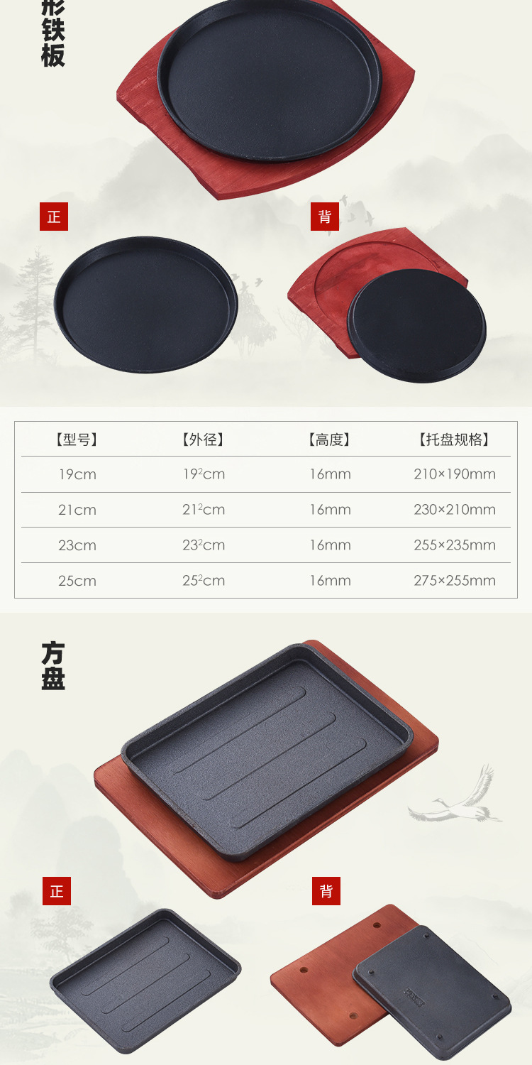 鉄板バーベキュープレート家庭用鋳鉄肥厚工場直販正方形ラウンドベーキングパン商業西洋ステーキプレート