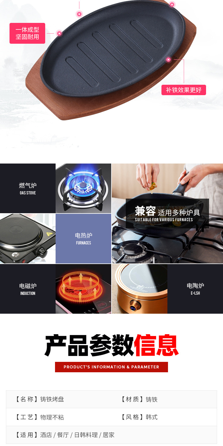 铸铁烤盘铁板烧电磁炉煤气灶通用烤肉盘家用商用煎盘不粘盘厂货源