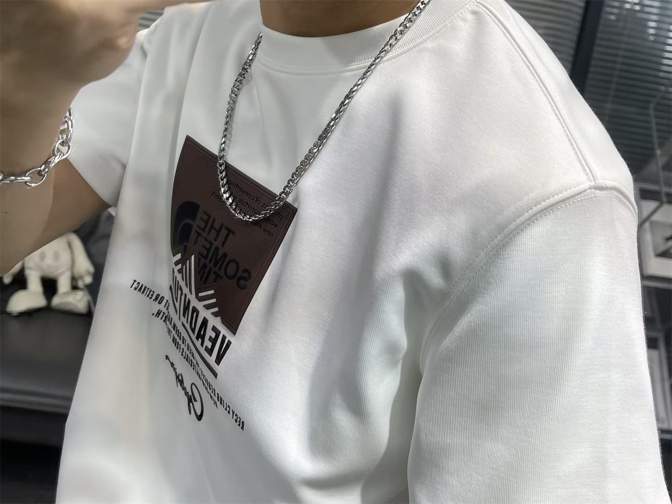 欧米の綿の半袖のtシャツの男性のアメリカの重いポンドのファッションの札のゆったりしている丸首の夏の新型の上着のtシャツの男性の青年の思いやり