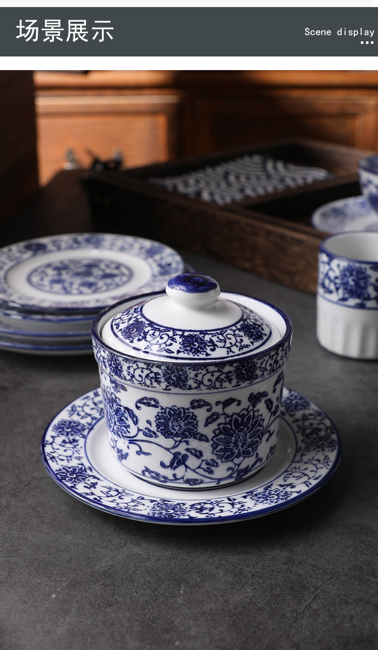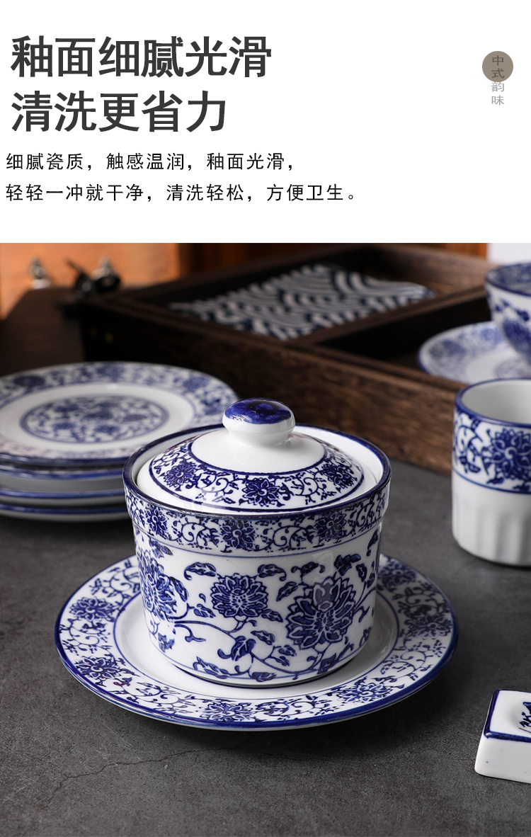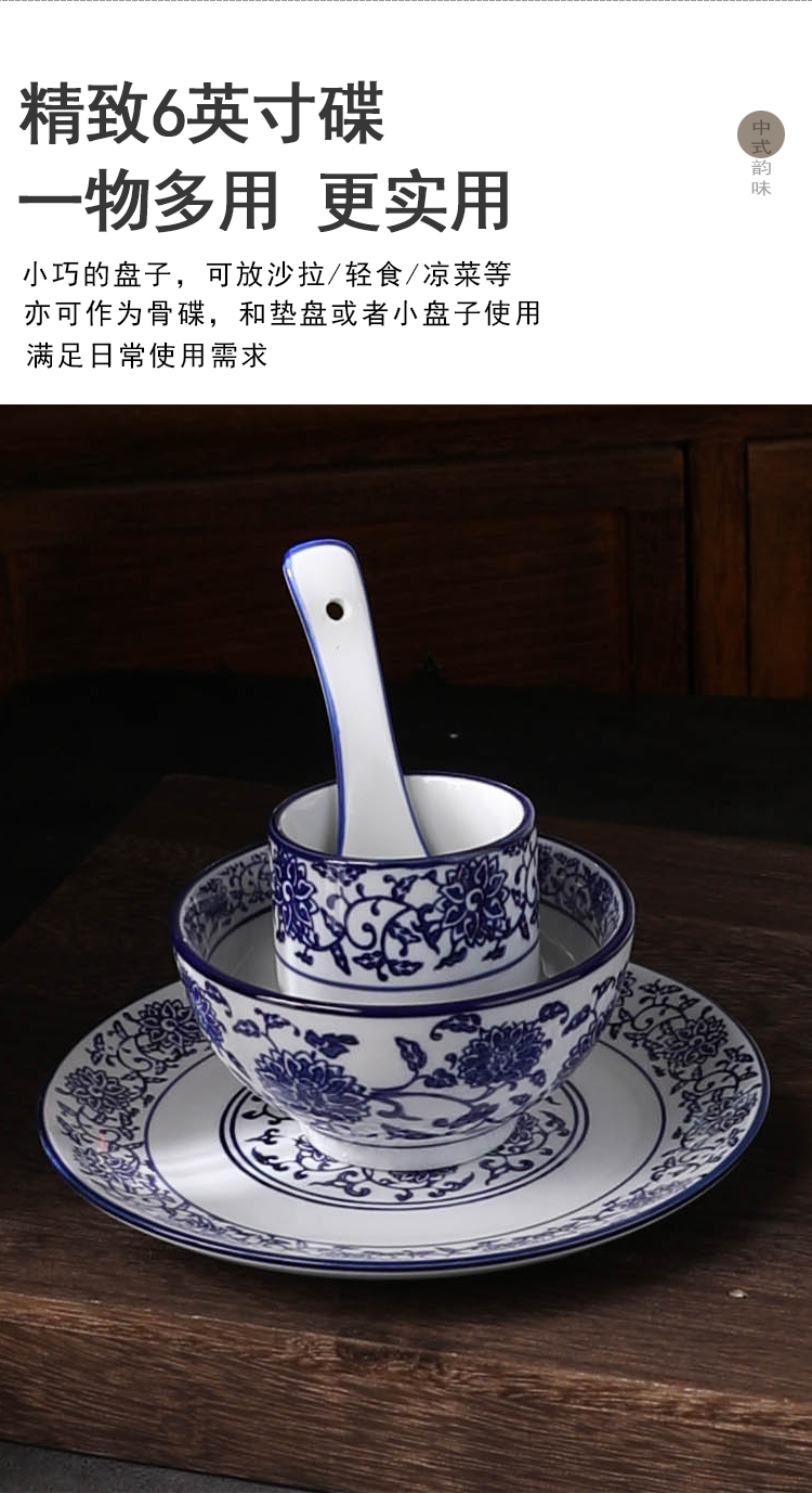 青花陶瓷餐具景德镇碗碟套装家用礼品骨瓷不挂油餐具中式碗盘批发