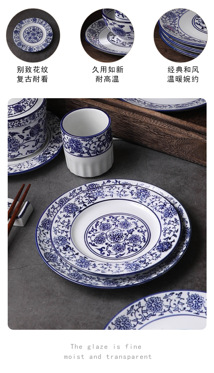 青花磁器皿商用特価陶磁器セット創意料理皿家庭用味皿ホテル専用チャーハン皿卸売り