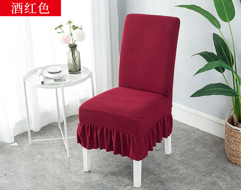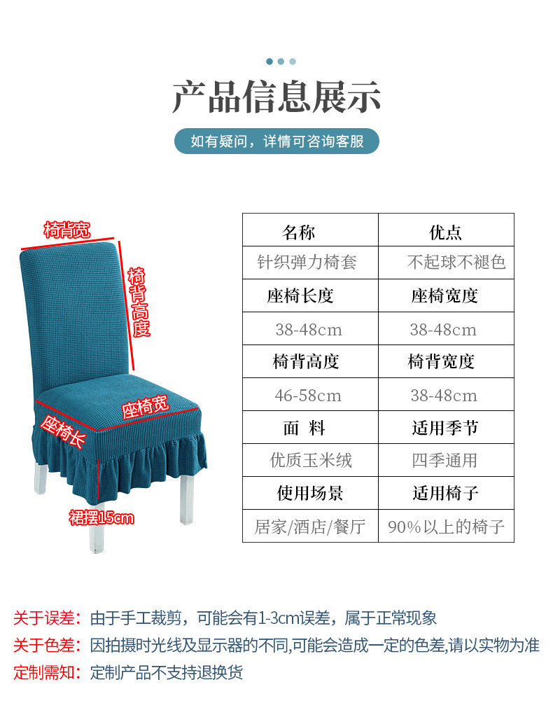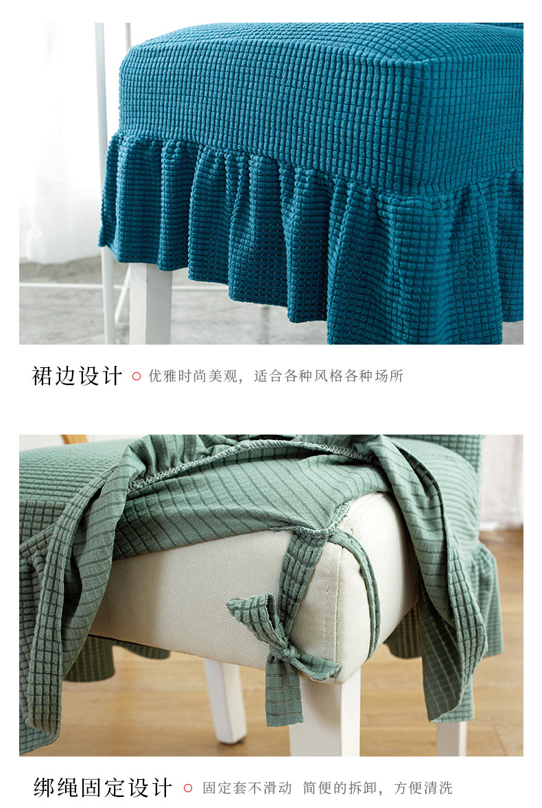 直背椅子カバー背もたれ一体弾力性椅子カバー家庭用通用実木腰掛けカバースカート飾り防塵耐摩耗性