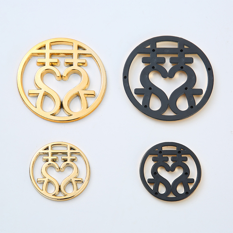 カスタムプラスチック装飾ボタンハート型双喜字銘板結婚おめでたいプレゼント外包装箱銘板メーカー