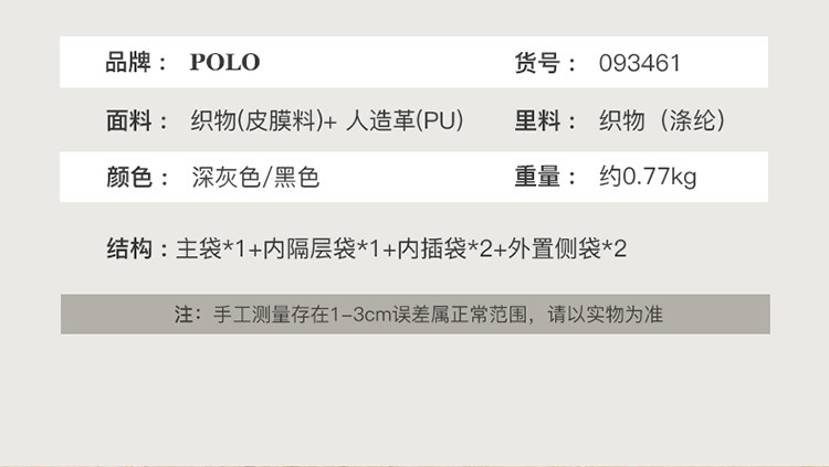 Polo短距離旅行バッグ男性新型ビジネス出張大容量手提げ男性旅行バッグ高級感手提げバッグ