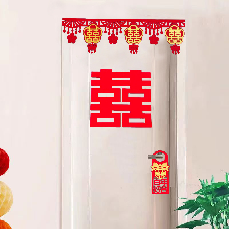 结婚门帘婚房装饰布置客厅卧室内门喜字拉花创意墙围挂饰婚庆套装