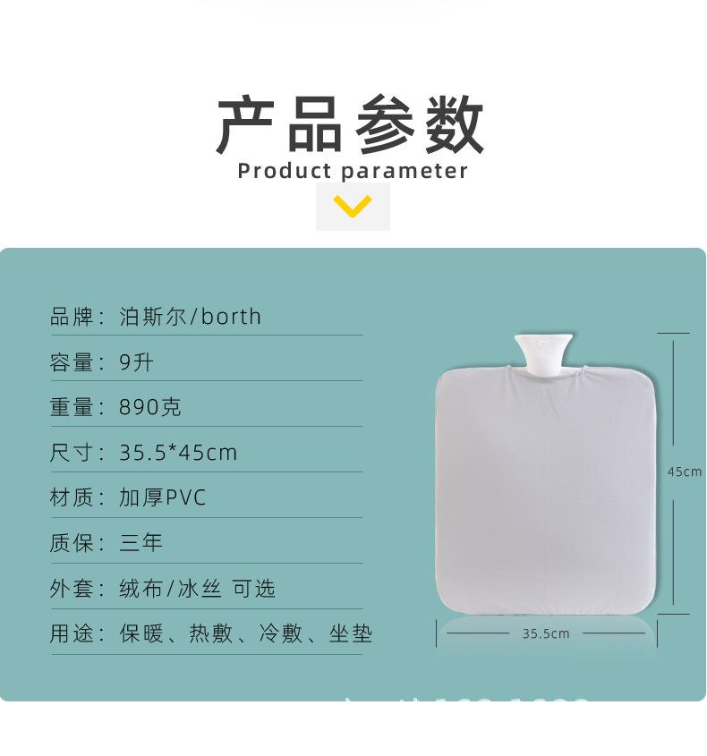 泊斯爾の特大サイズの湯たんぽの注水の座布団9リットルの湯たんぽは腰の胃を温めて安全に防爆して手を温めます。