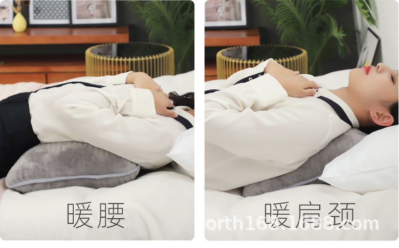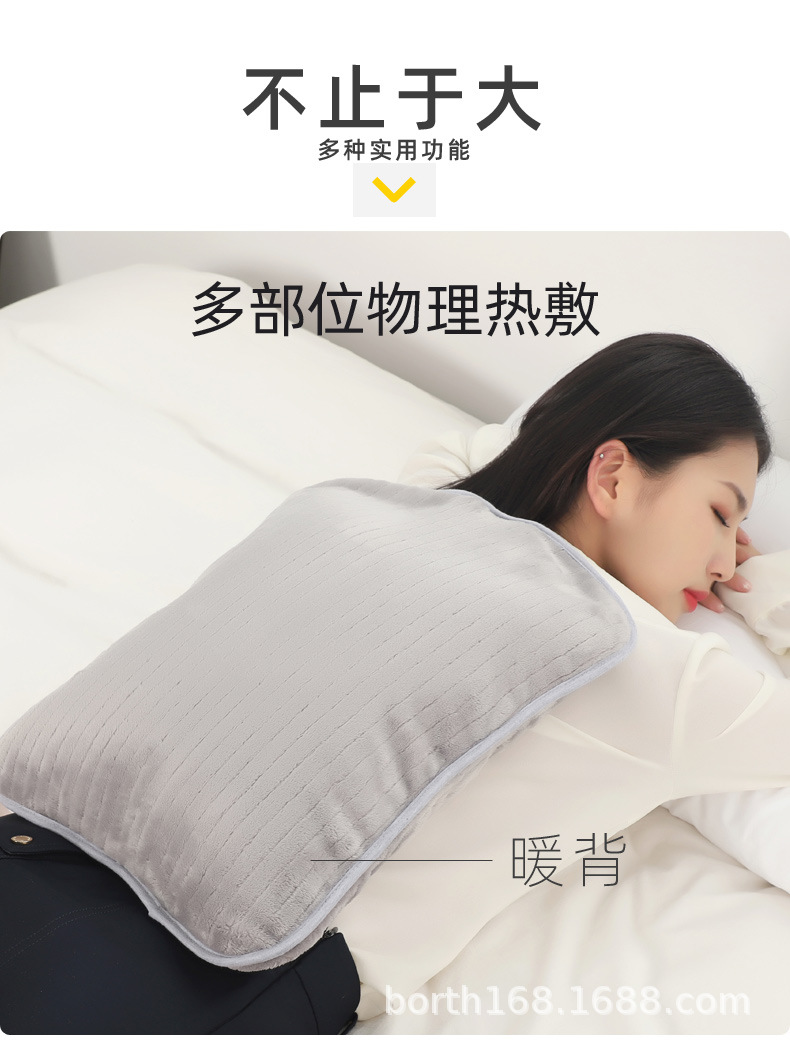 泊斯爾暖背暖腹暖腰多機能湯たんぽに手を入れて暖水宝注水式湯たんぽにします。