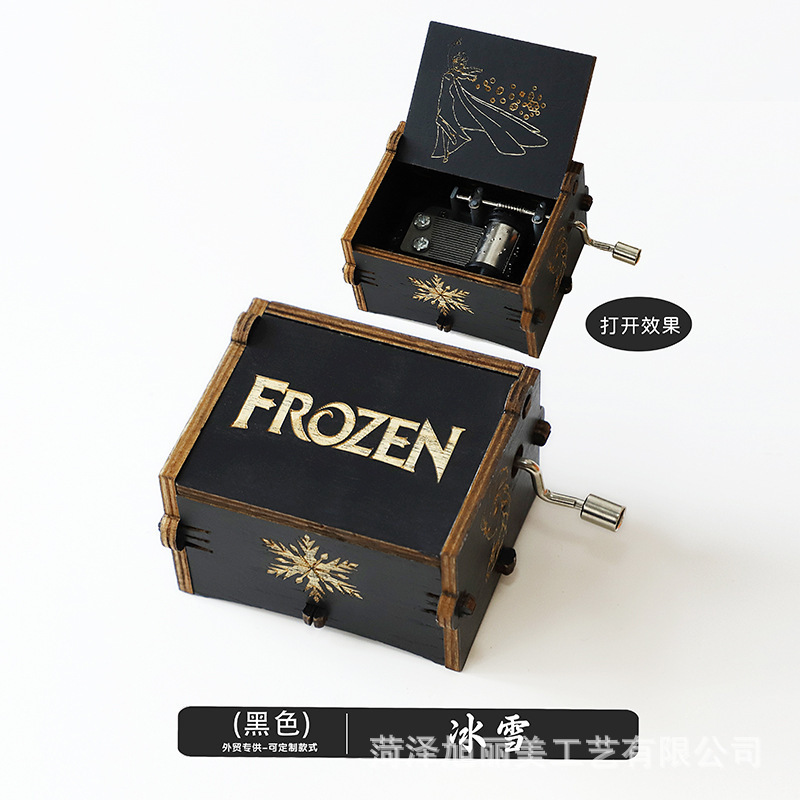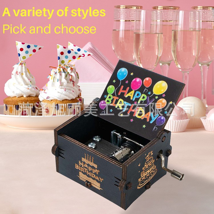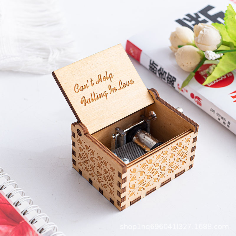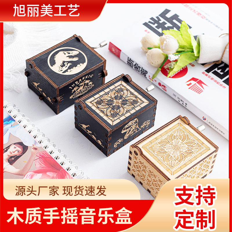 现货批发手摇木制八音盒激光雕刻精美彩绘音乐盒节日礼物礼品摆件