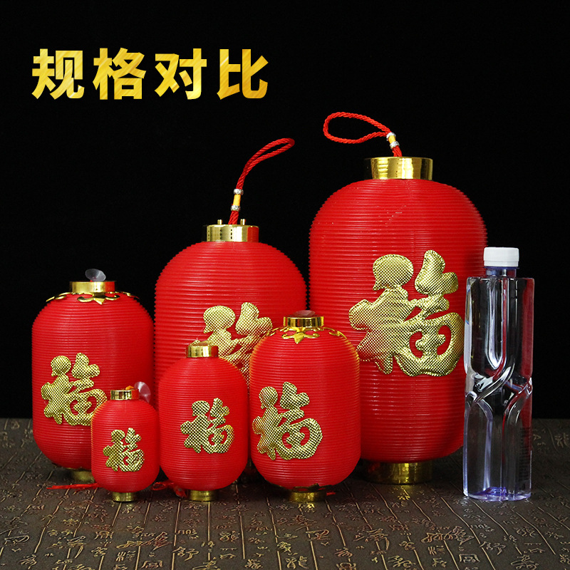 祝日の長い形の冬瓜のプラスチックの圧力の小さい提灯のデパートの屋外は日本式の提灯の祝日の福の字の装飾を配置します。
