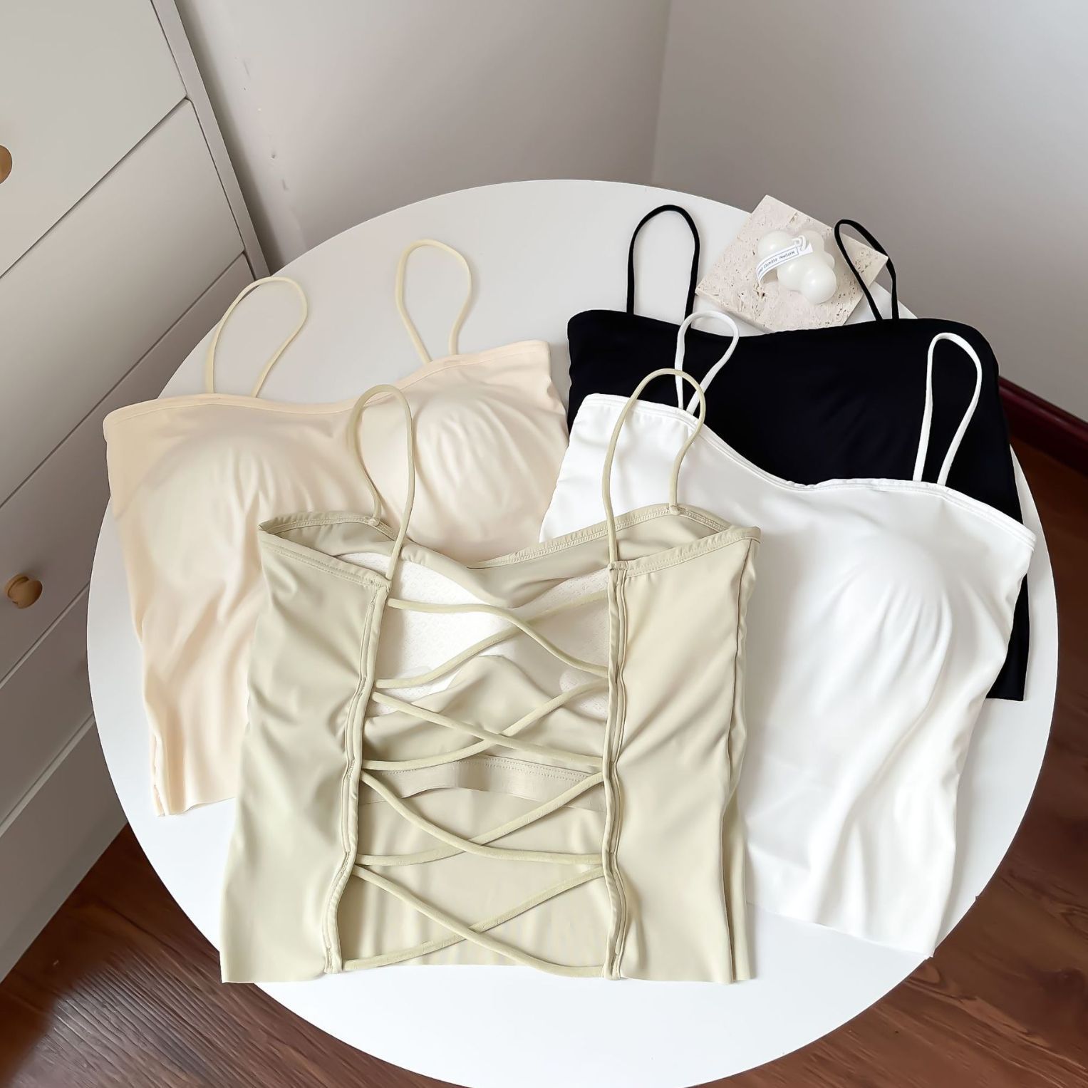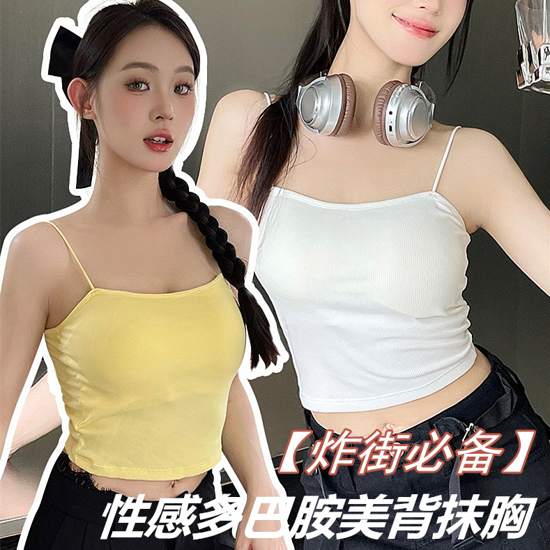2024フランス式純欲風ギャルのキャミソール女性の夏のしわが見えます。