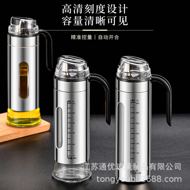 家庭用ハンドル油ポットステンレススケール付きガラス油瓶キッチン家庭用自動開閉蓋食品級耐高