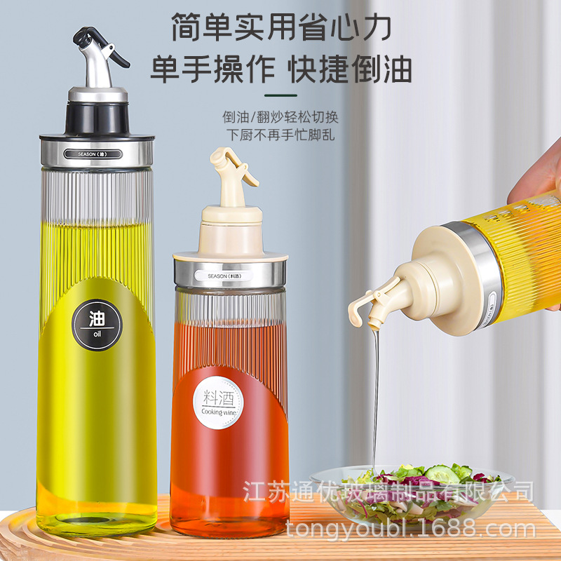 卸売りガラスオイルポット台所家庭用調味料瓶高温調味料缶腰密封防漏油瓶バーベキュー戸