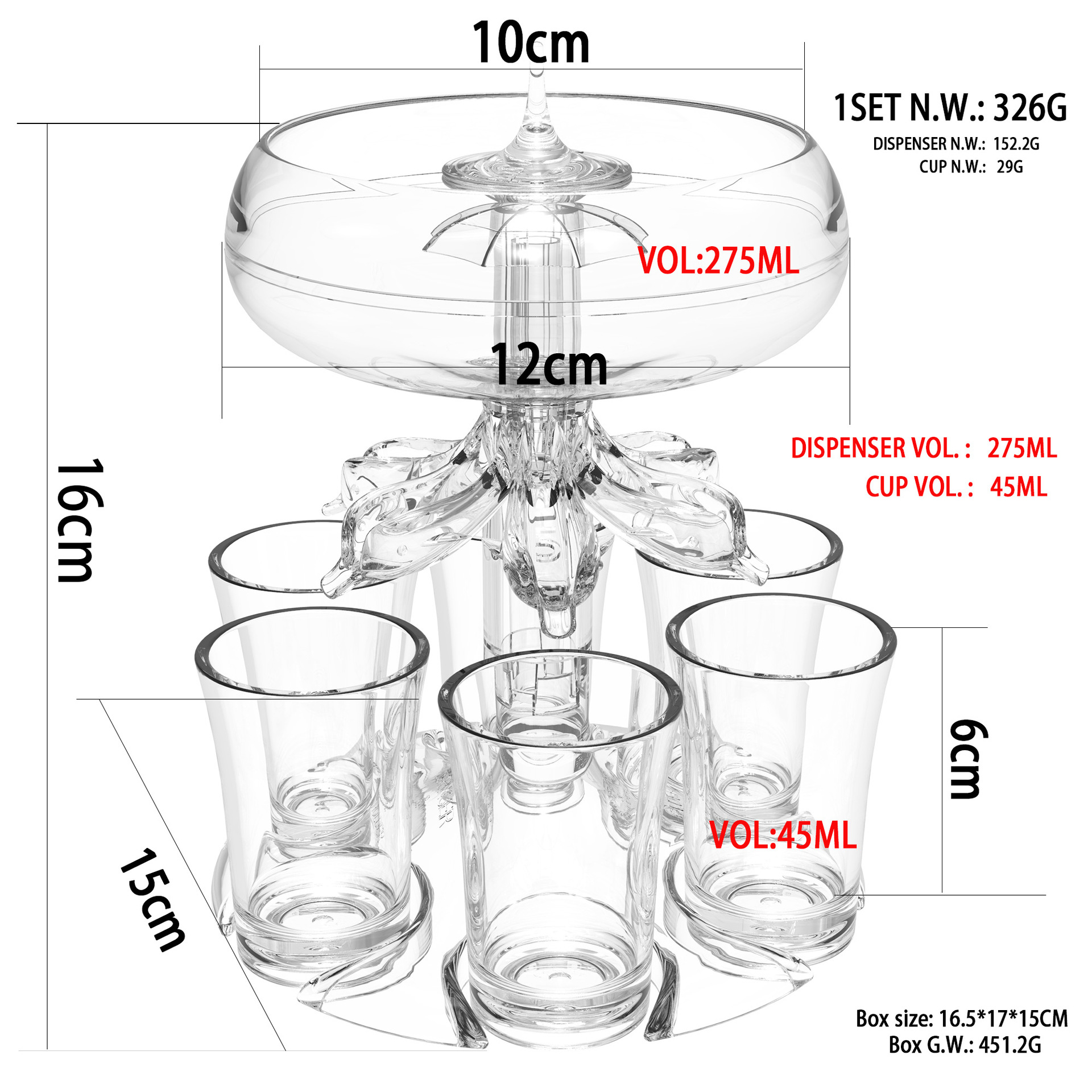 酒架净重 155g ,6个杯子175g, 透明杯子尺寸:高度6.8cm 直径4.5cm,容量:45毫升