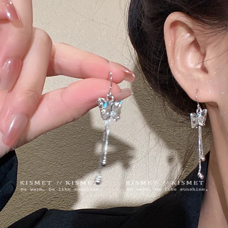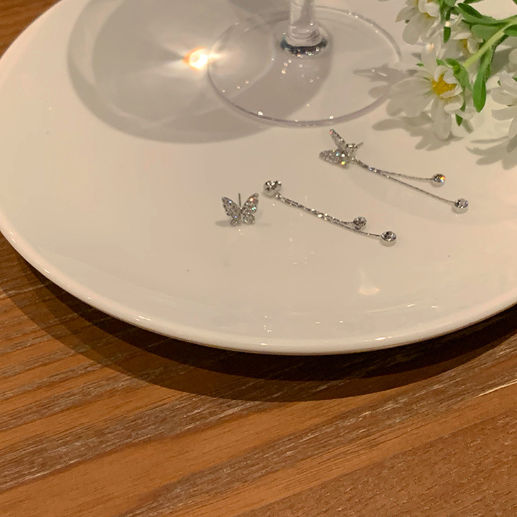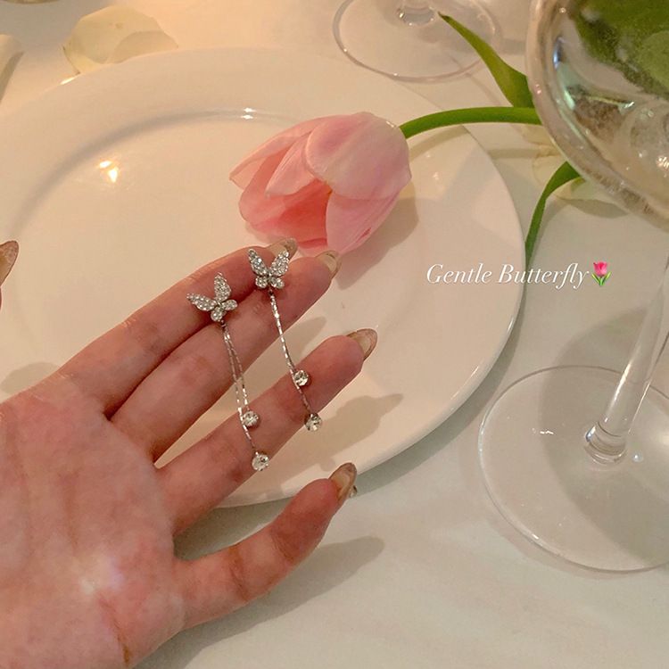 蝴蝶仙子~闪耀锆石蝴蝶流苏耳钉女2025年新款爆款高级感气质耳饰