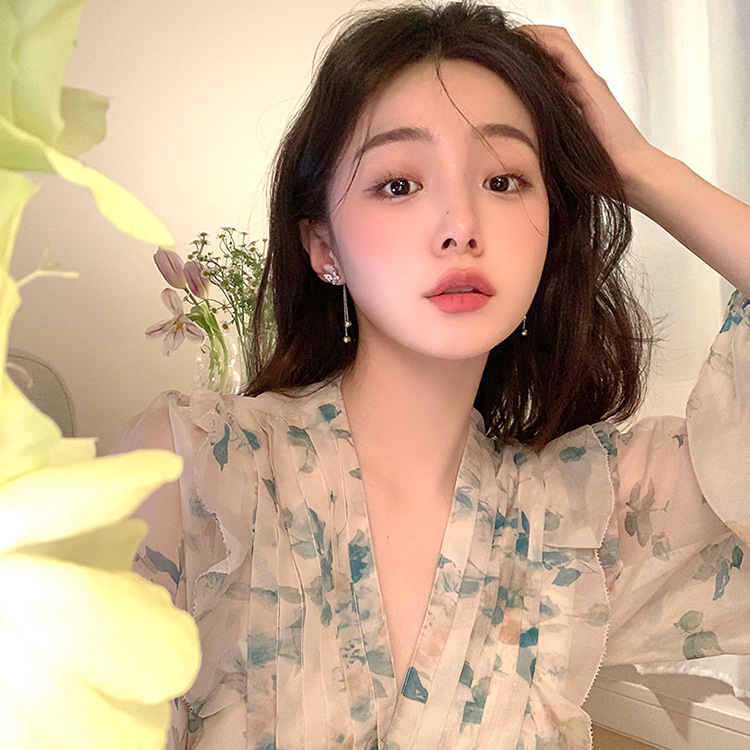 韓国のほんのり甘い女の子の光沢のある葉のパールのロングタッセルライト高級イヤリングデザインイヤリングイヤリング気質スタイル