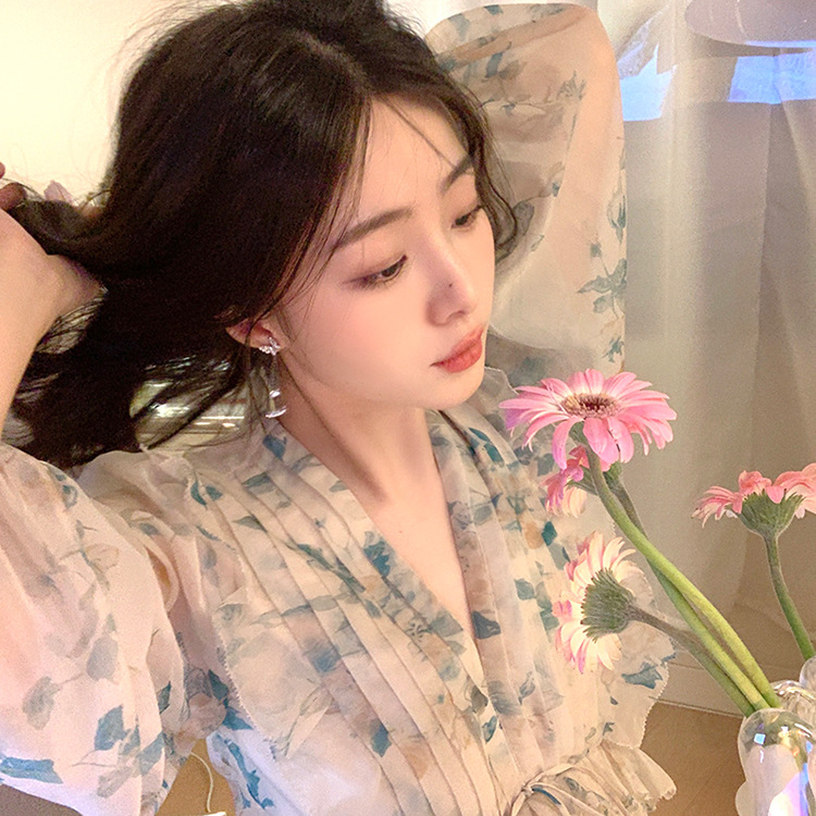韓国版の高級感のあるイヤリングの女性の精巧な耳飾りの2022新型の潮の耳のピアスのドリルの花の蝶の小さくて似合う女性