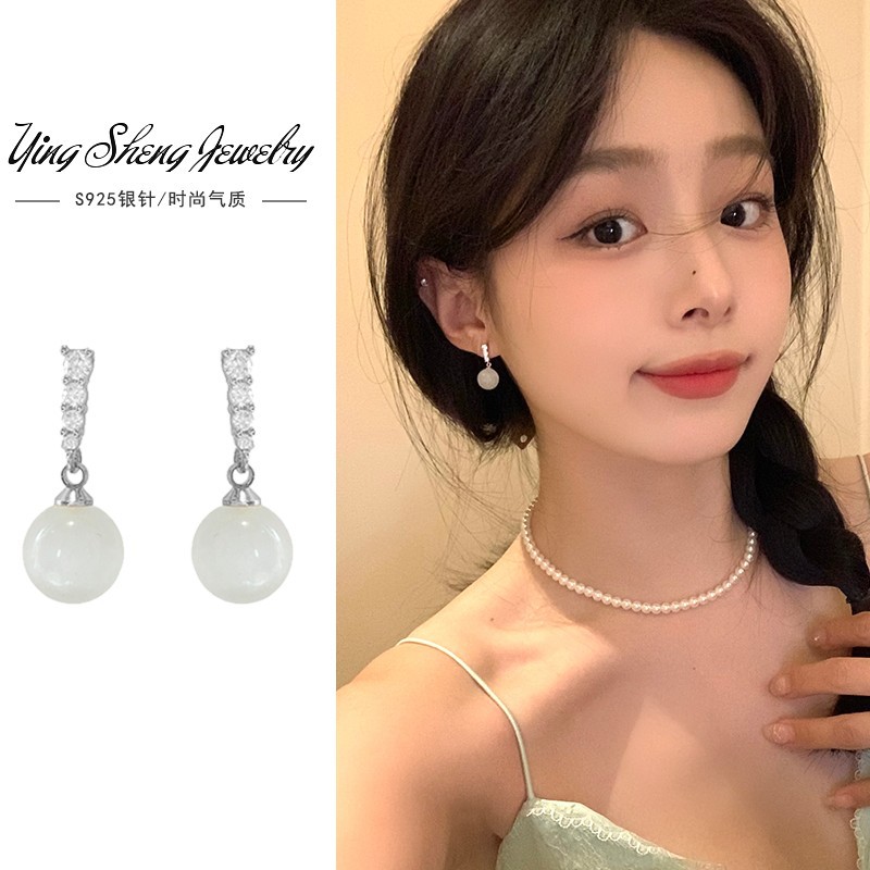 法式珍珠锆石流苏耳坠时尚百搭闪钻长款耳扣绝美设计感轻奢耳饰