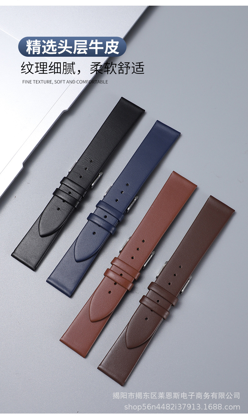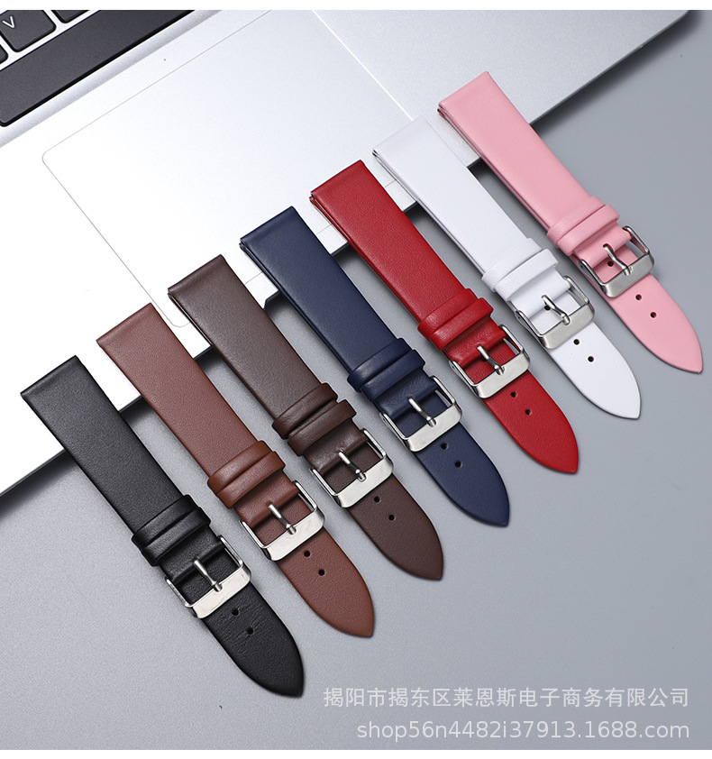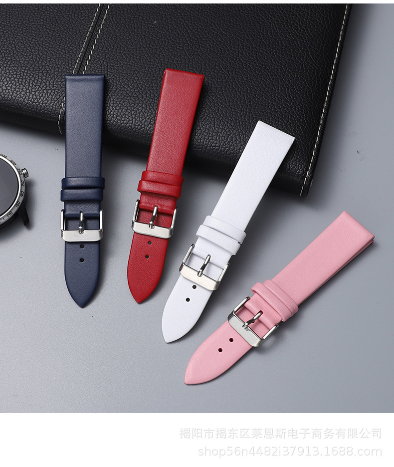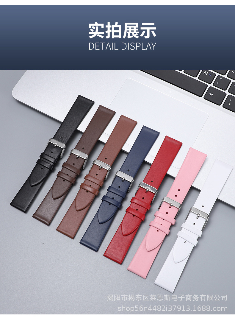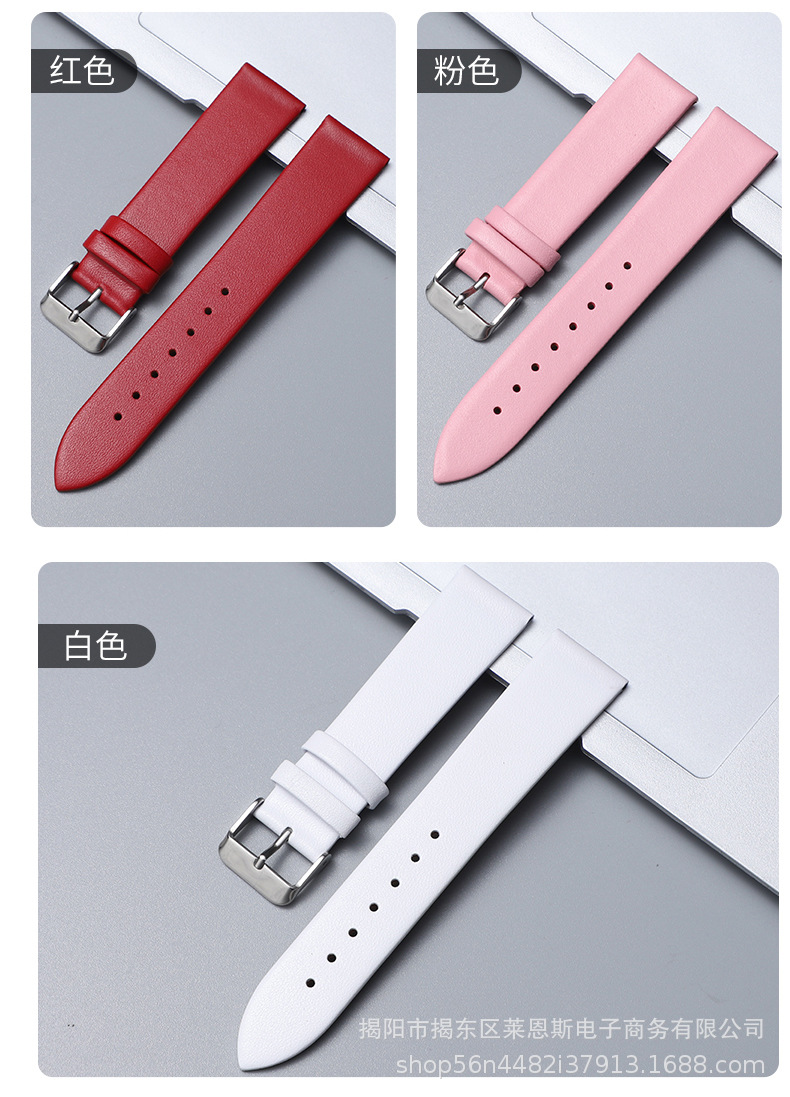 超薄针纹平纹真皮手表带男女柔软平纹平身表带针纹彩色皮表带针扣