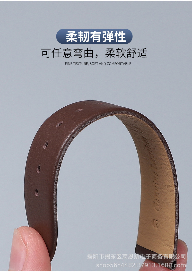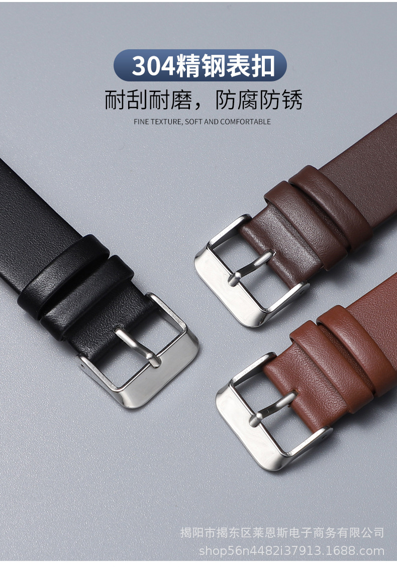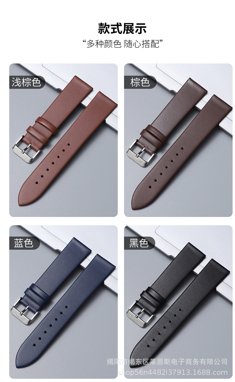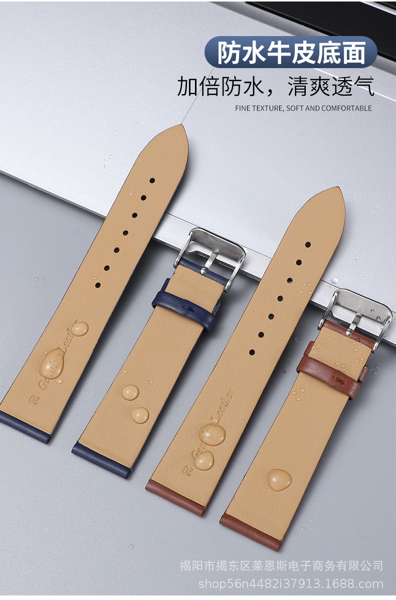 超薄针纹平纹真皮手表带男女柔软平纹平身表带针纹彩色皮表带针扣