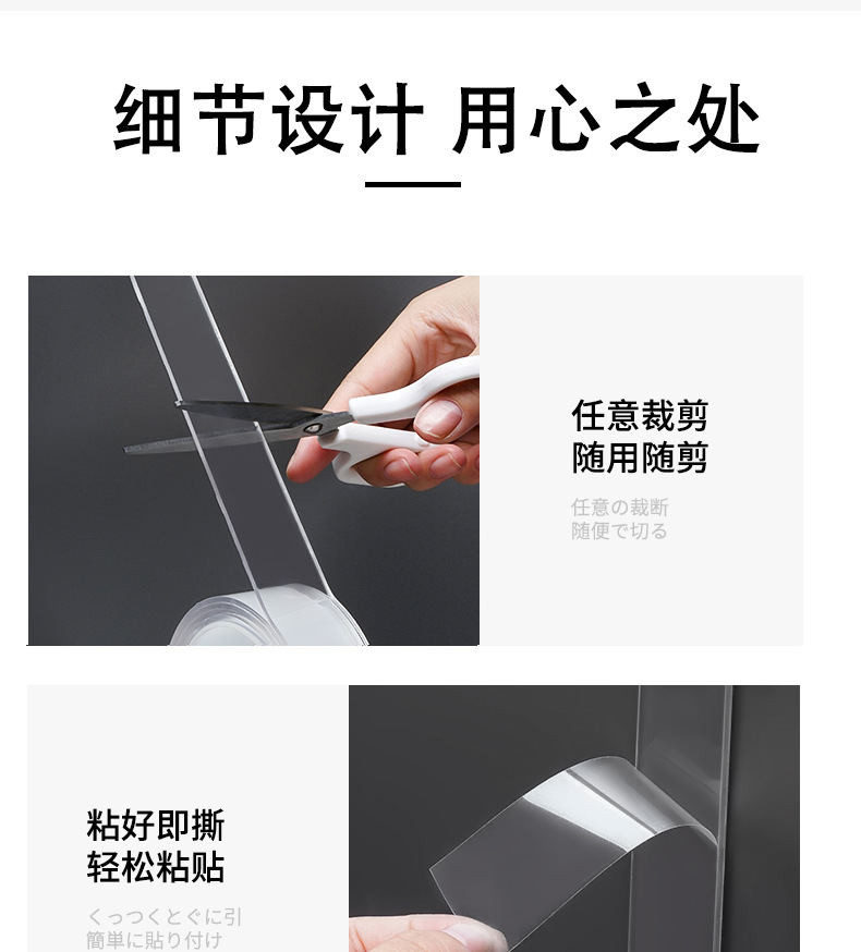 ナノ両面テープ高粘度粘着テープ強力固定マジックテープ透明無痕マジックテープ車用テープ