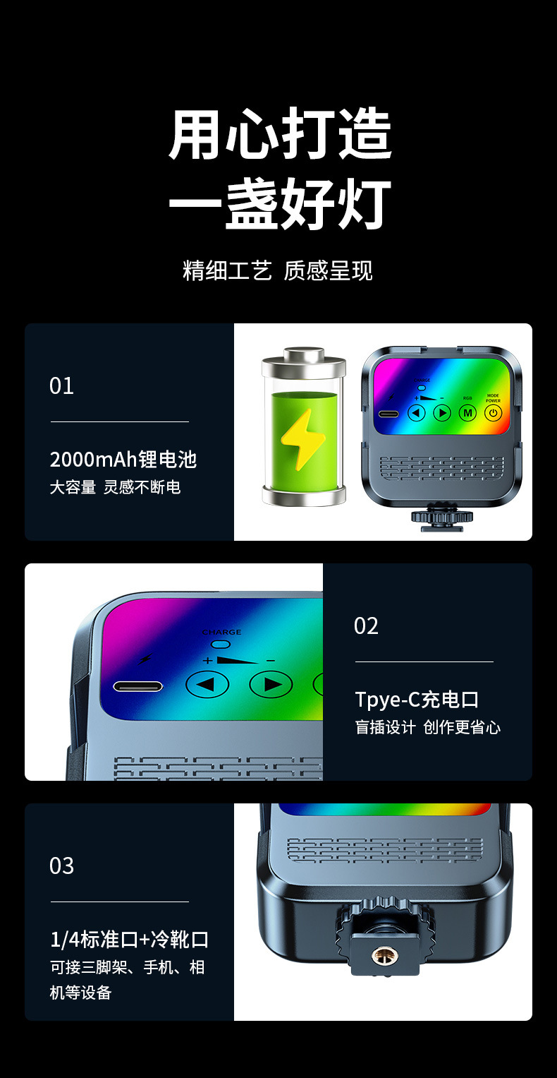 クロスボーダー専用ライブrgbフルカラーミニポケットハンディ美顔豆腐ランプ撮影携帯電話ledライト