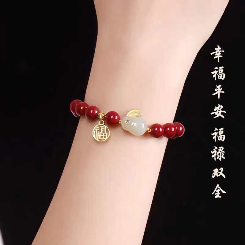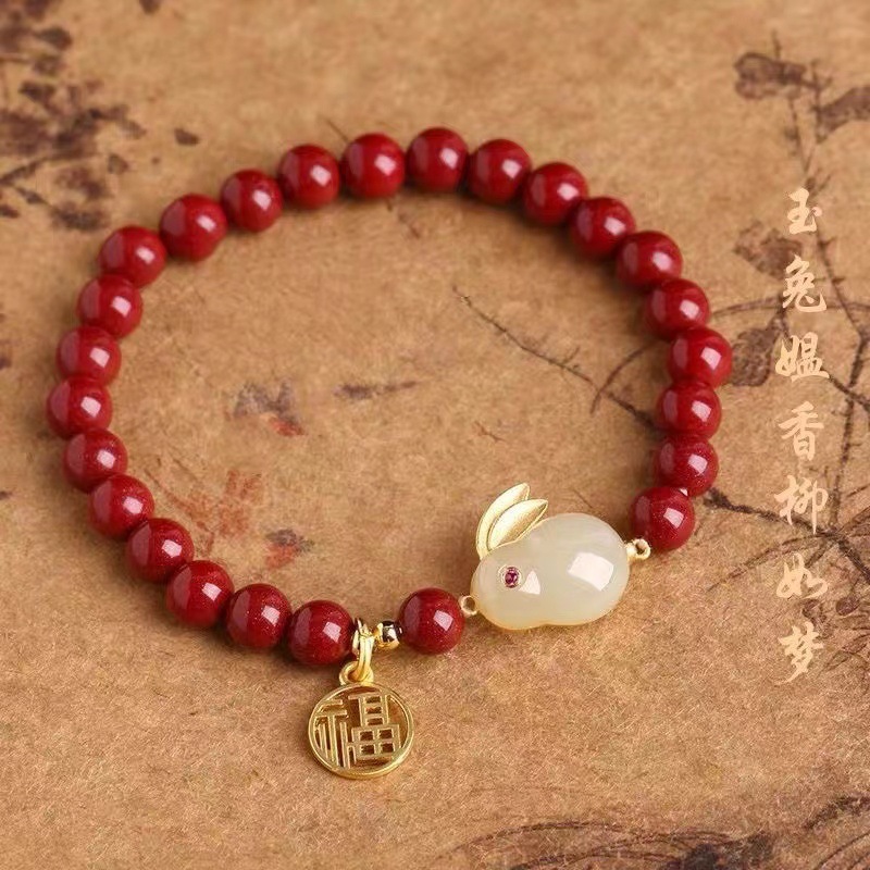 朱砂福の札の玉のウサギの手の串の玉の質の生肖のウサギの納福の輸送のブレスレットの本命の年のアクセサリのお嬢さんの贈り物をまねます。