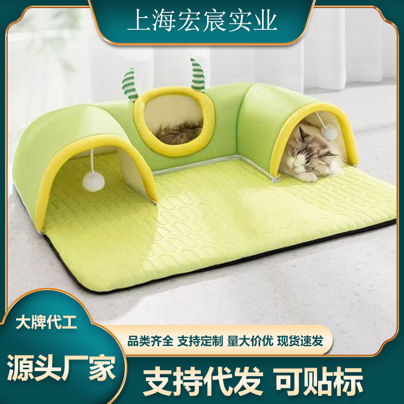 国境を越えた新しいラテックス犬小屋マット、噛みつきにくい、通気性のある猫小屋、取り外し可能で洗えるペット小屋、猫トンネルおもちゃ、防水
