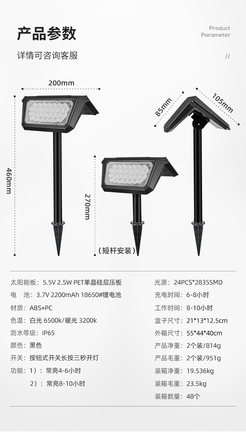 Amazon 売れ筋ソーラー スポットライト屋外中庭風景双頭地面挿入ツリー人体誘導芝生ライト