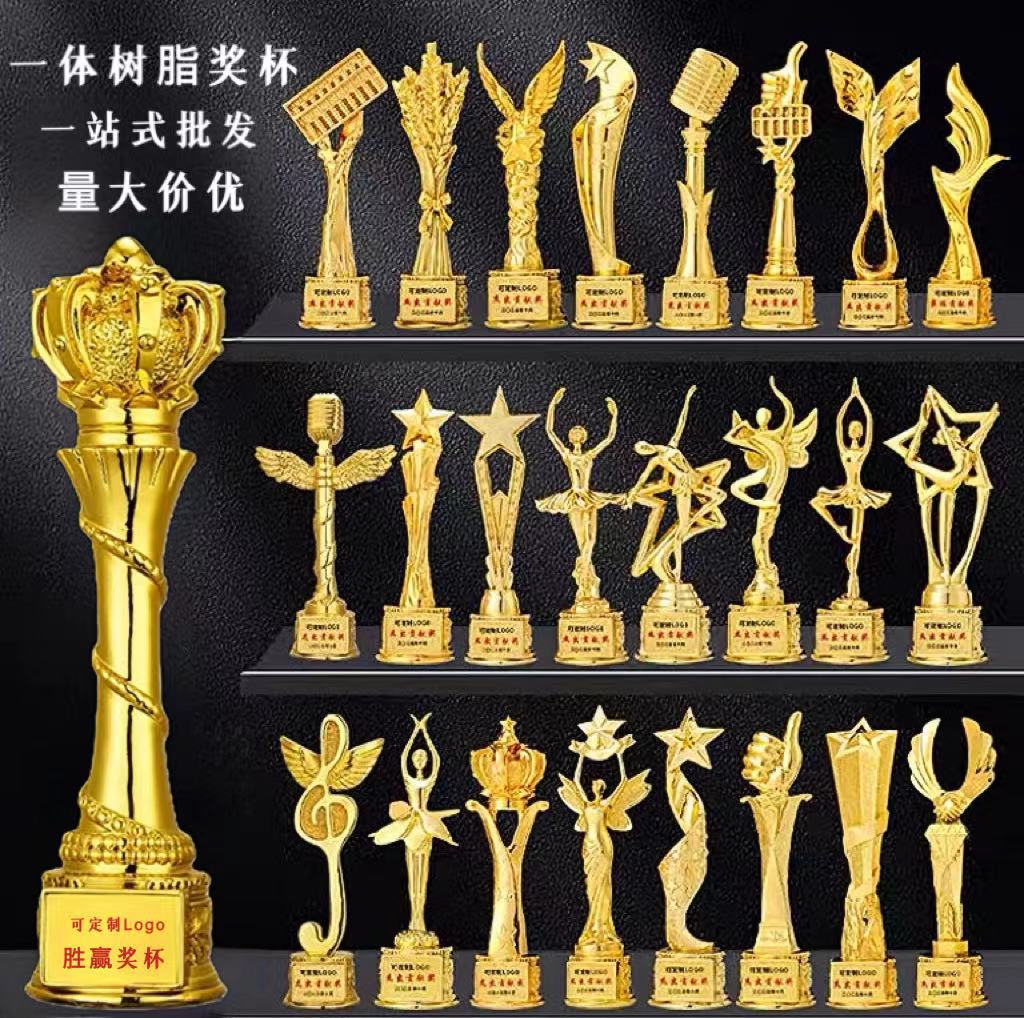樹脂トロフィー新型ダンスクラウン一体五角星トロフィー機構創意子供親指金メッキ人気