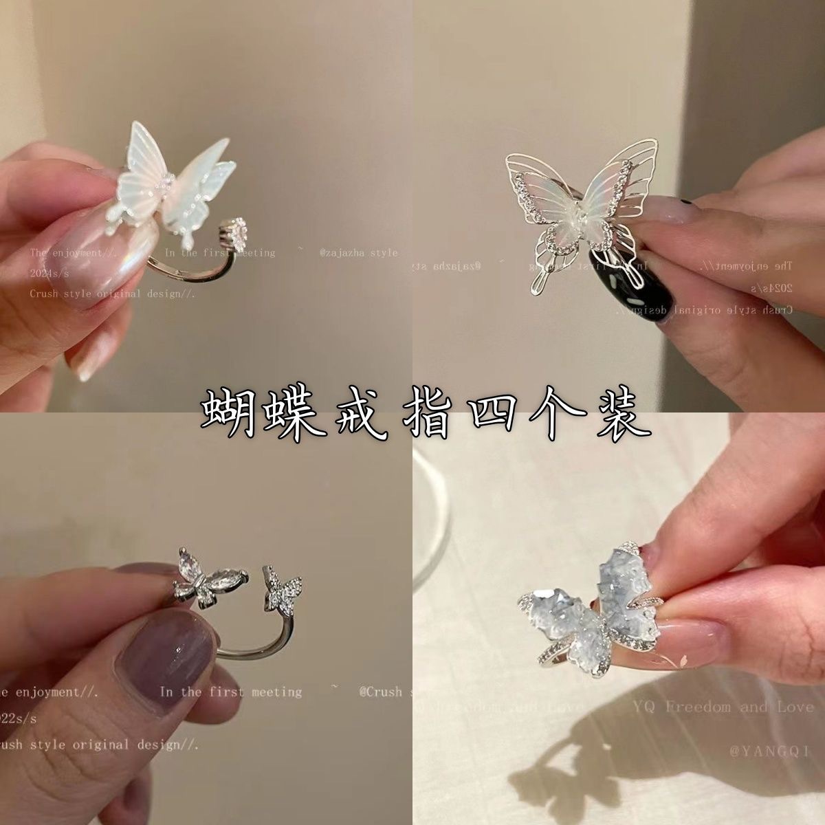 超仙カラー蝶ジルコン開口指輪女性大衆デザイン食指戒軽贅沢高級感夏指環潮