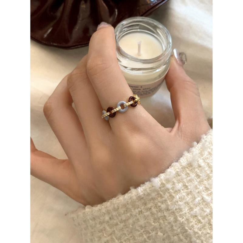 新商品のレトロな気質の釉薬のダイヤモンドのリングの指輪の女性の大衆の設計の高級感の開口部はリングの指輪を調節します。