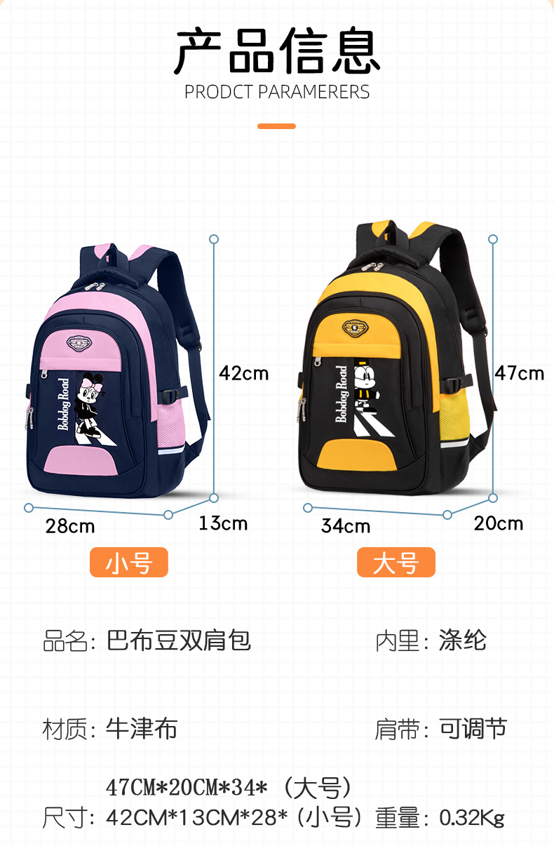 巴布豆カバン小学生の女の子1-6年生カバンオックスフォード布は軽くて背もたれのリュックサックを負担します。