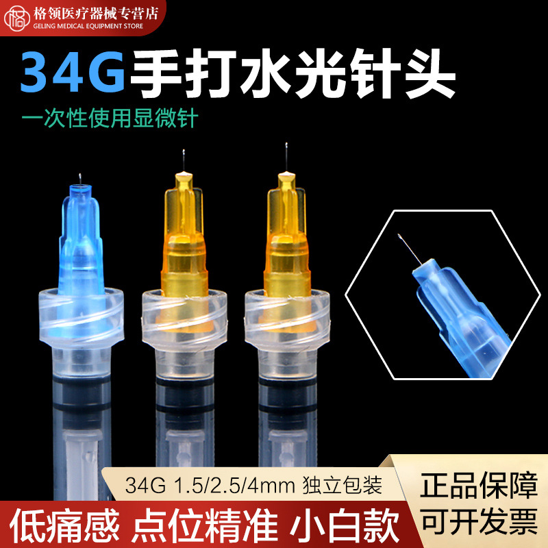 水の光の針の34G1.5/2.5/4mmの使い捨ての手は小さい針の水の光の超細い非痛みの蚊の単針を打ちます。
