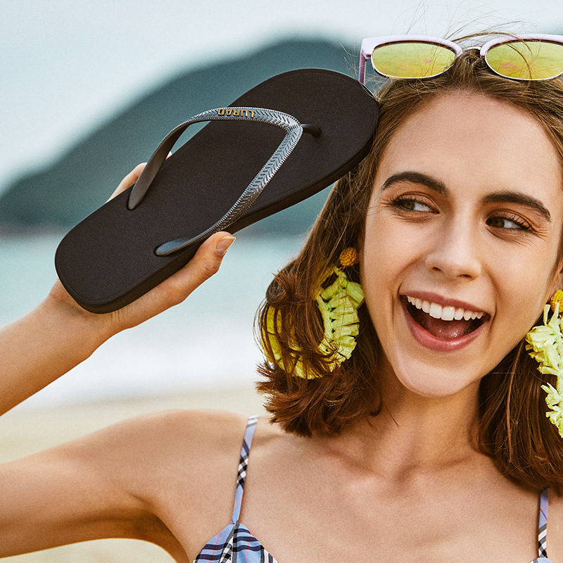 路拉迪の人の字は女性の夏の海辺を引きずって耐摩耗性の滑り止めの外で砂浜の靴の平底を履いて足の冷たいスリッパを挟んで卸売りします。