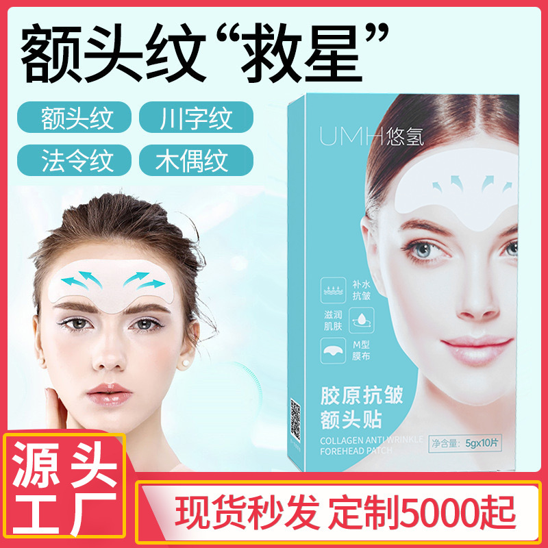UMH ユウハイドロゲンコラーゲン抗シワ額パッチ充填、水分補給、小じわの軽減、リフティングと引き締め、卸売在庫あり