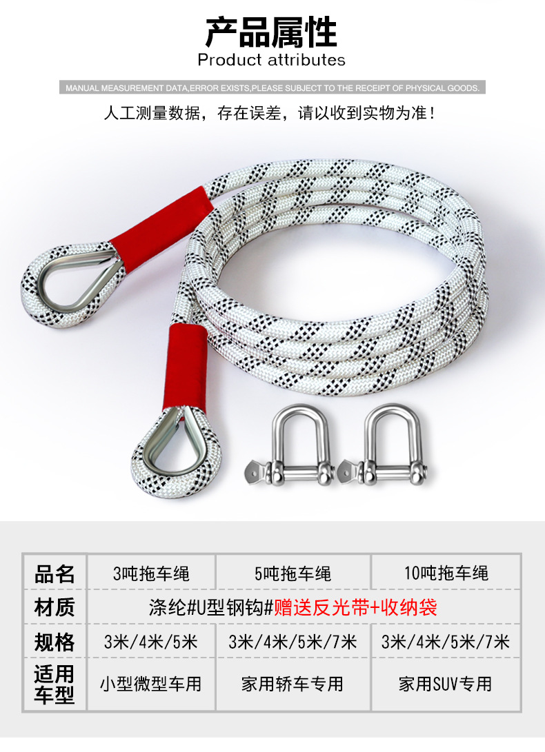 車のトレーラーロープ屋外キャンプオフロード安全ロープ牽引ロープ救助ロープu型スチールバックルポリエステルロープ牽引ロープ