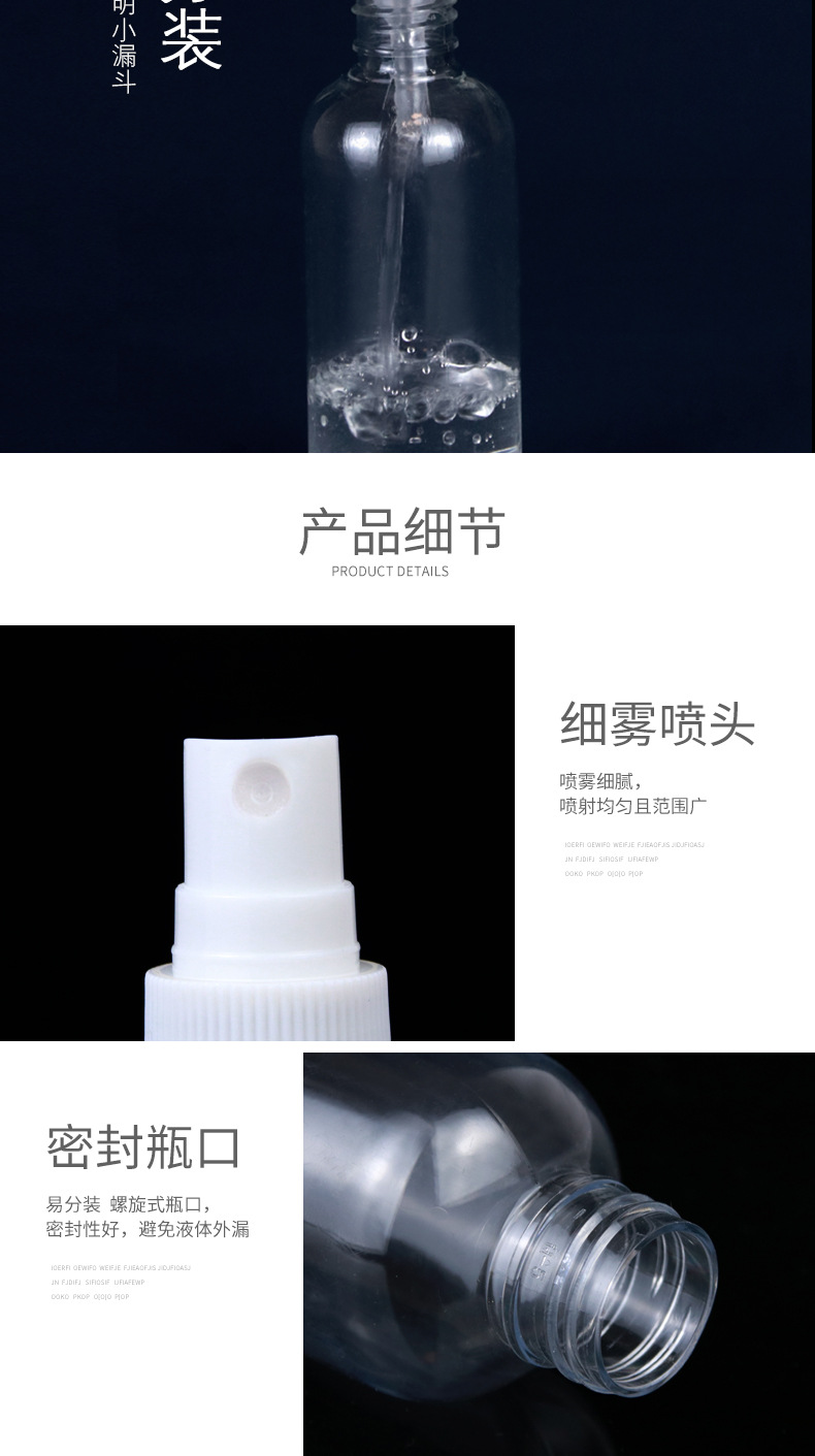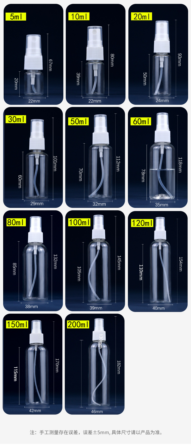 スプレーボトル30/50/100mlミリリットル透明スプレーボトルpetプラスチックボトル小スプレーポットアルコール分注細霧小型