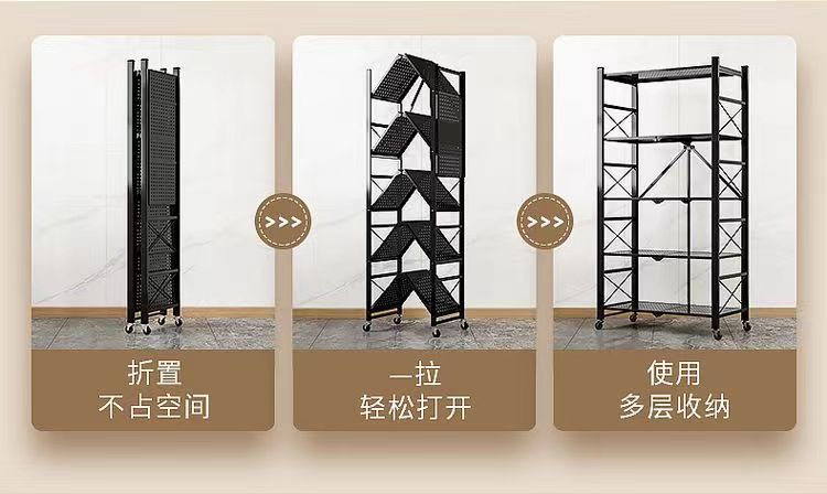 家居收纳架免安装多层厨房大折叠落地带轮子客厅可移动整理置物架