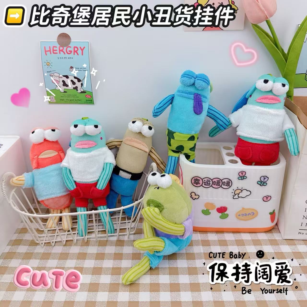 海绵宝宝比奇堡居民挂件毛绒呆呆鱼比奇堡钥匙扣挂件可爱书包挂饰