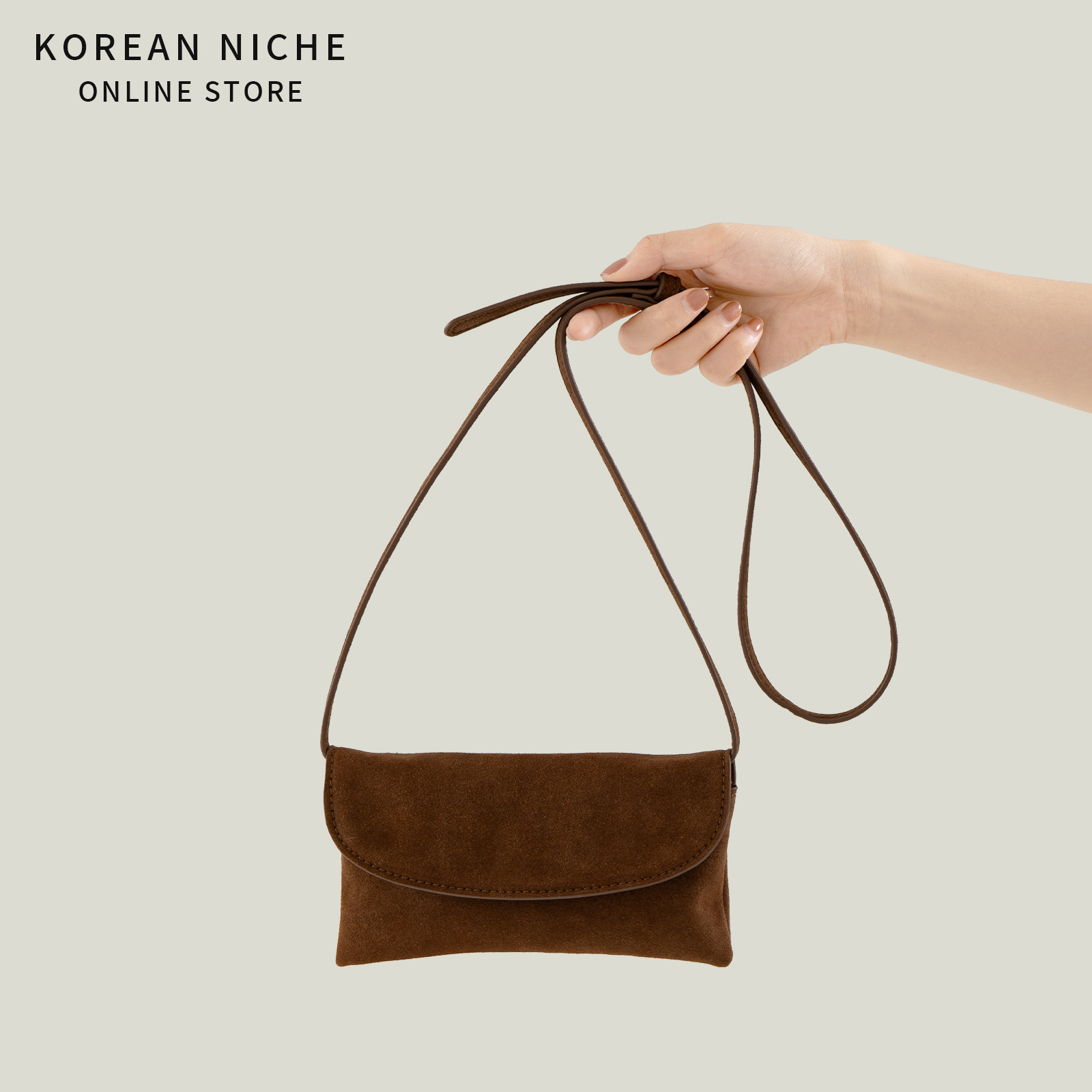 韩版小众设计麂皮绒材质小方包女新款卡片包手提包单肩斜挎包包女