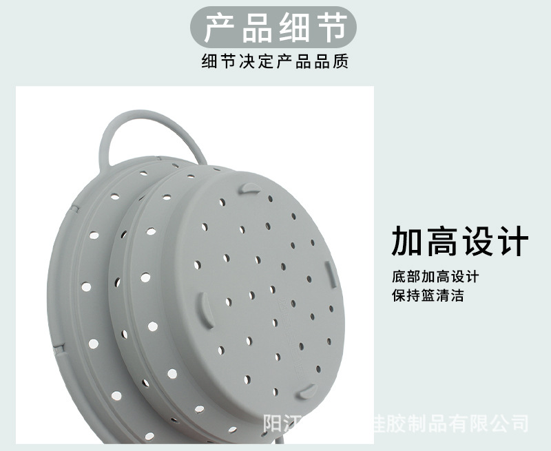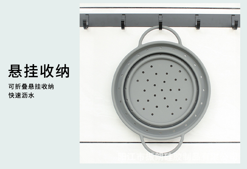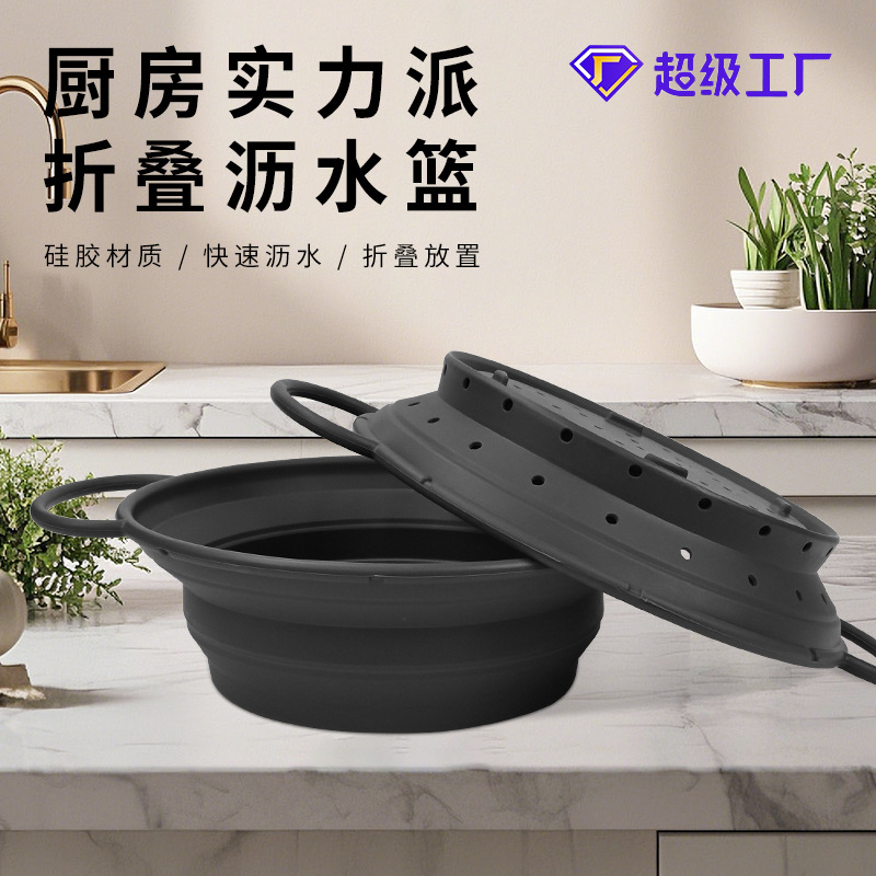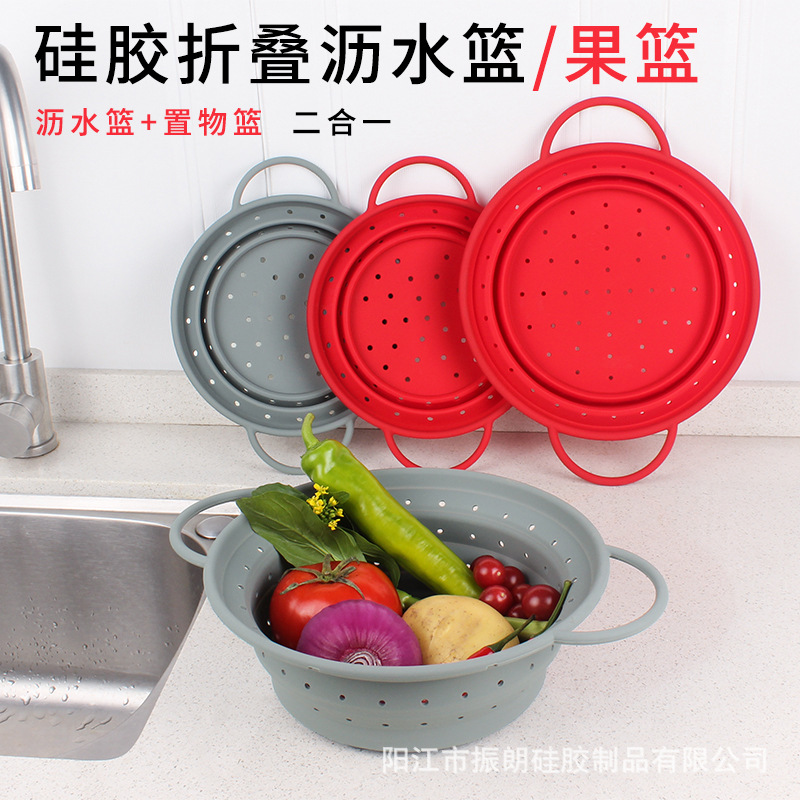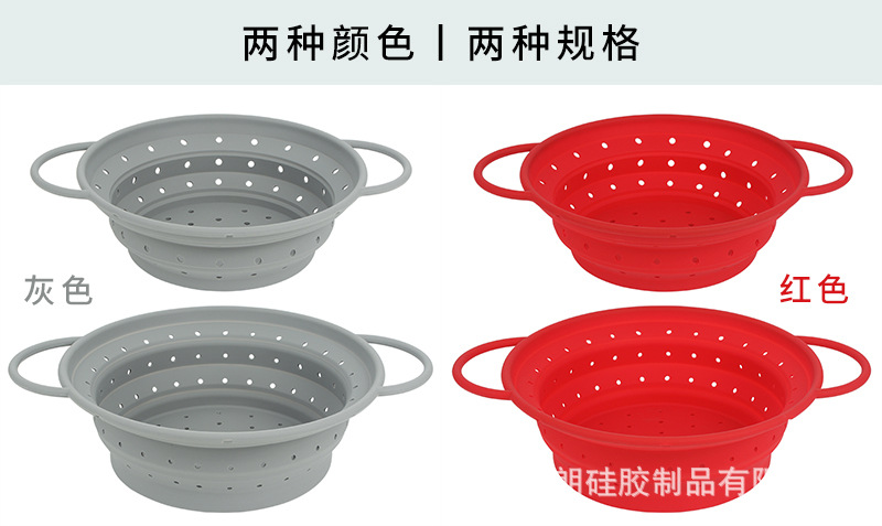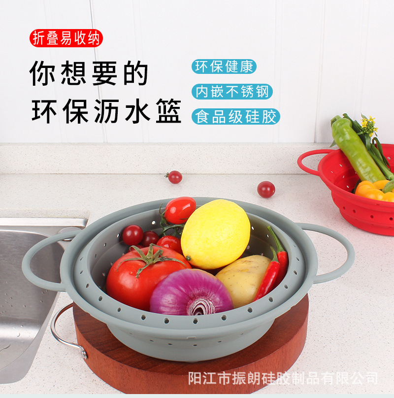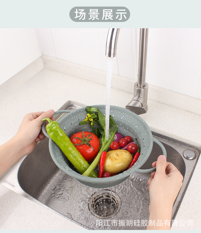 热销耐高温硅胶可折叠沥水篮 蔬菜水果洗菜篮家用厨房专用易收纳