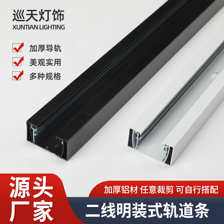 卸売りled全アルミ材角形軌道灯条1/1.5/2メートル灯具は二線レール部品を厚くした