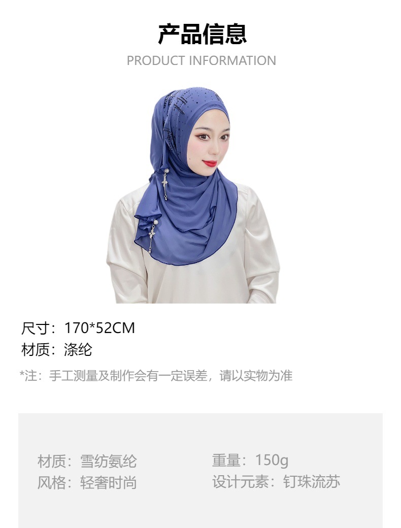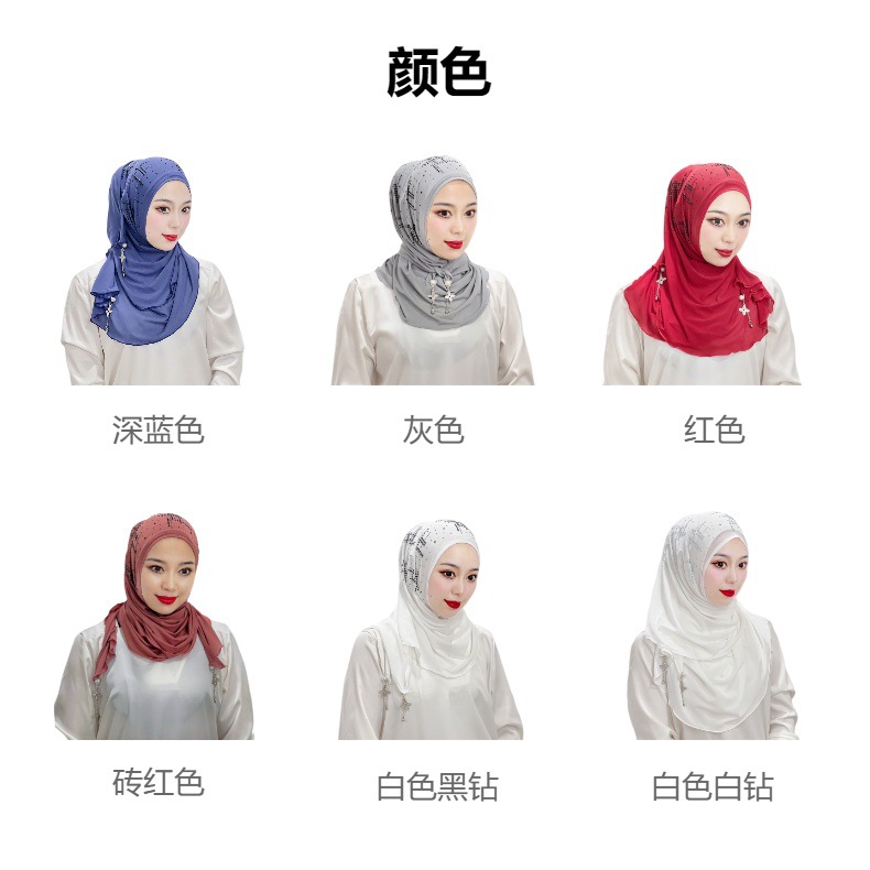2024夏の新型クロスボーダー釘珠プルオーバーヘッドスカーフの弾力性純色民族フードの現物卸売り