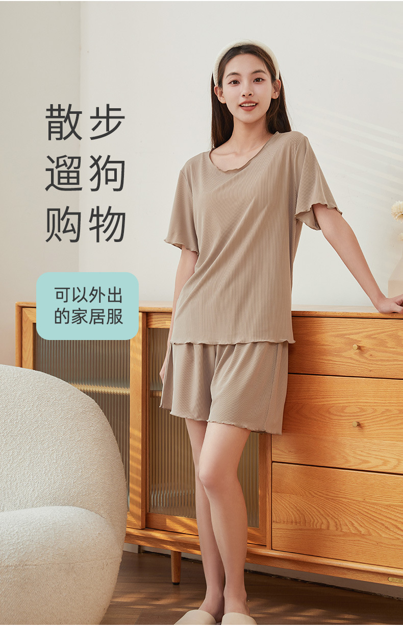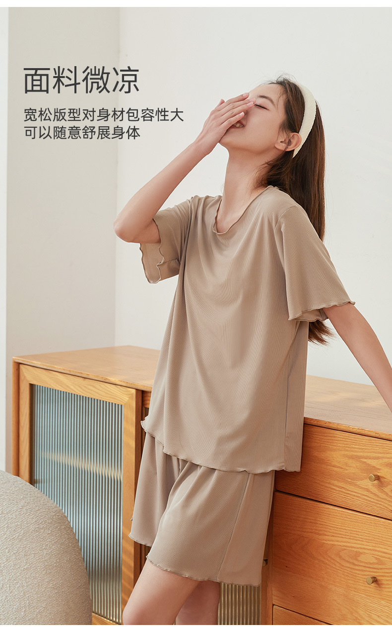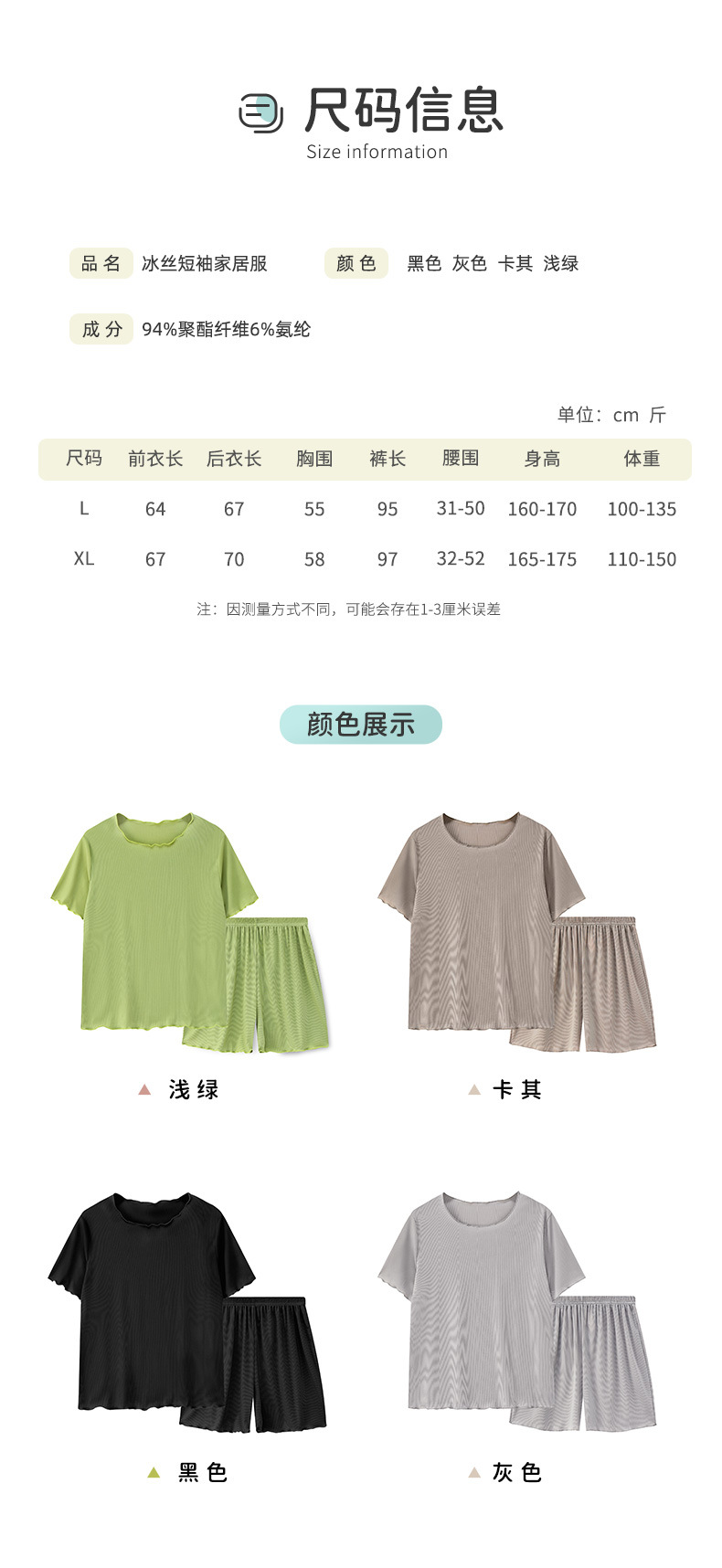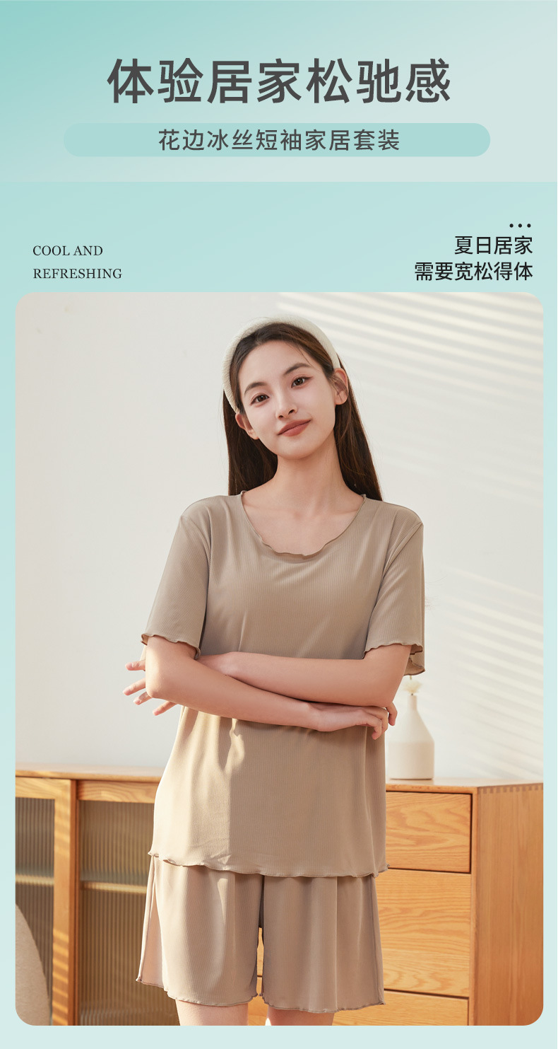 シューティ23夏レディースネジ氷シルク半袖ホームウェアセットゆったりパジャマ半袖ショーツセットレディース