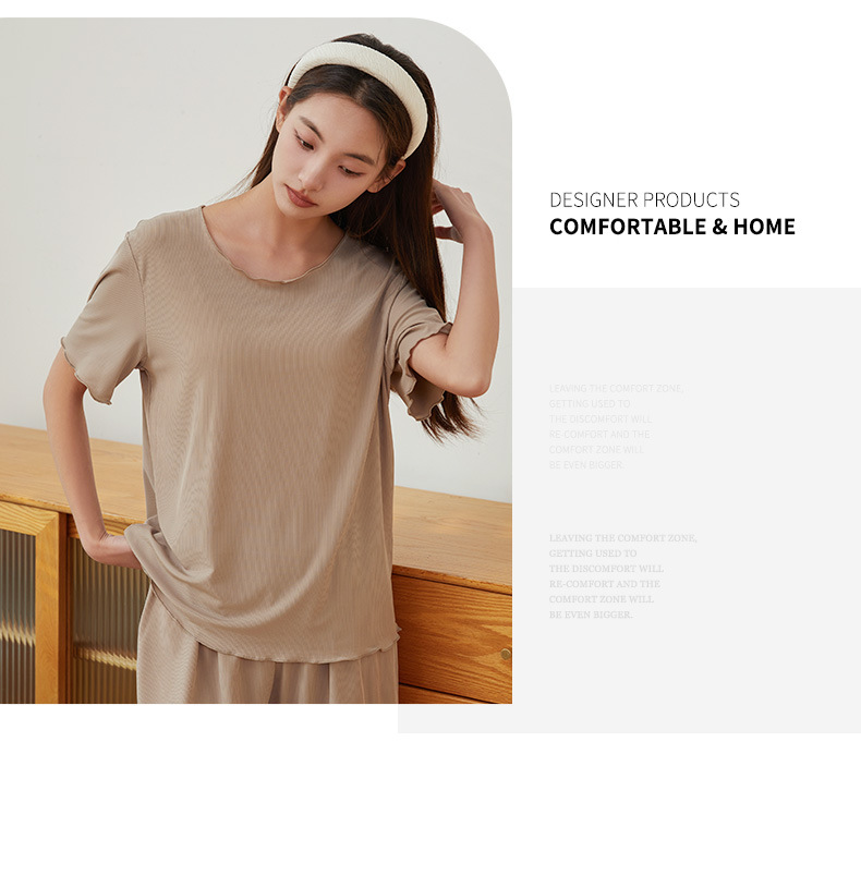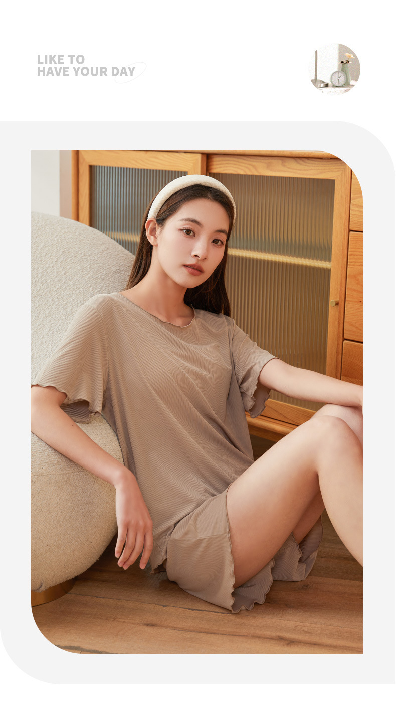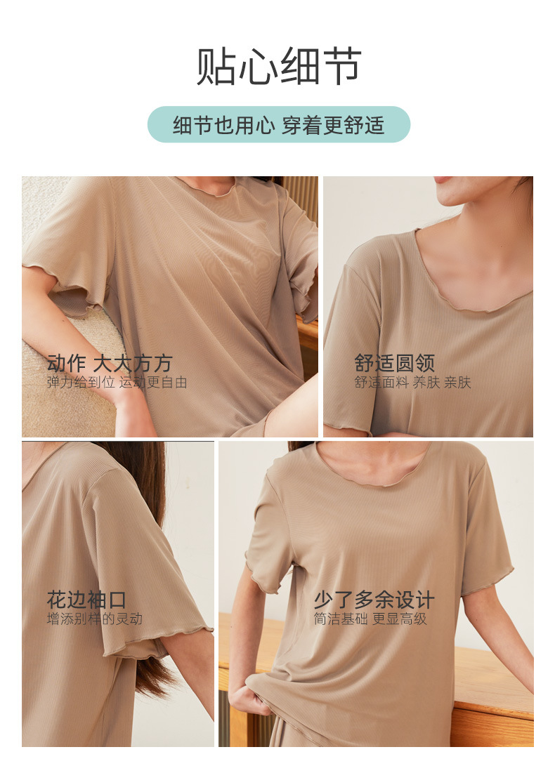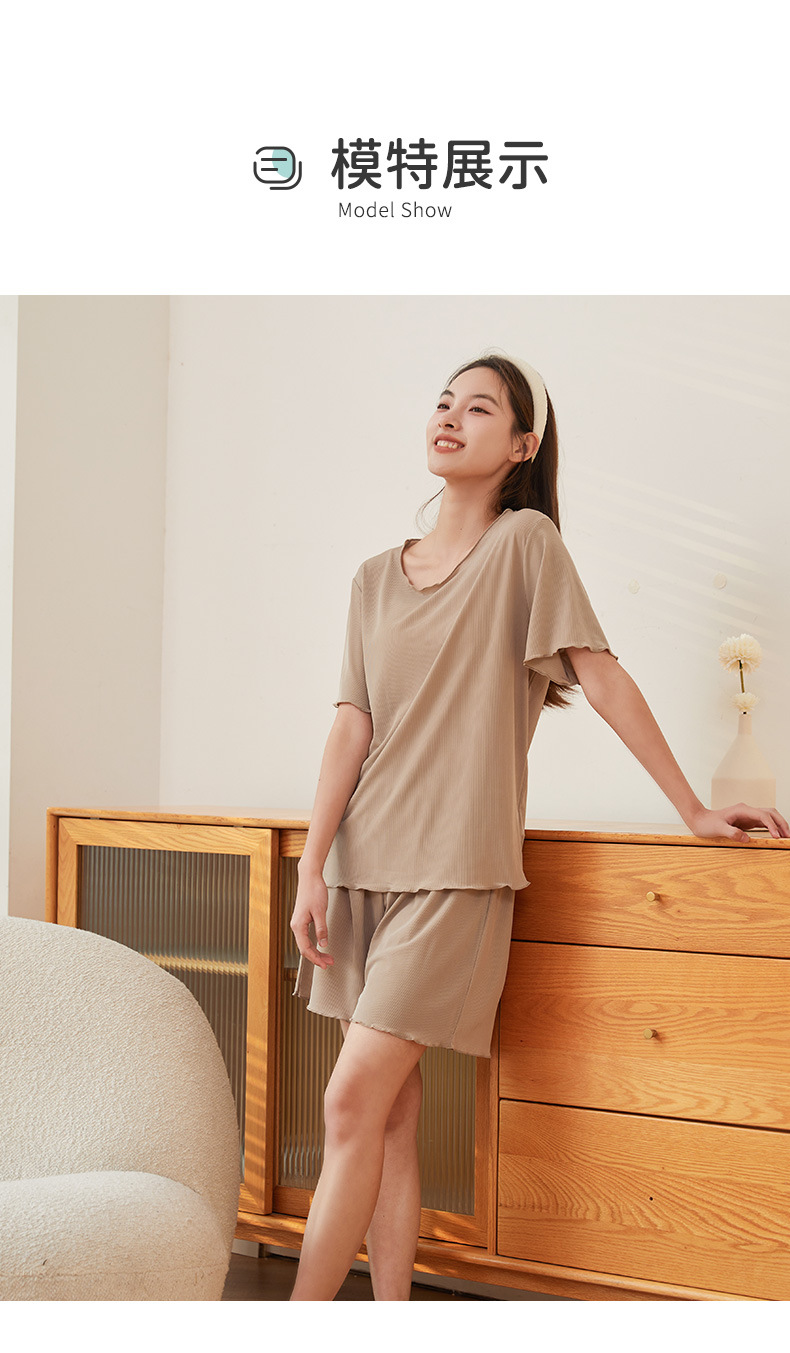 シューティ23夏レディースネジ氷シルク半袖ホームウェアセットゆったりパジャマ半袖ショーツセットレディース