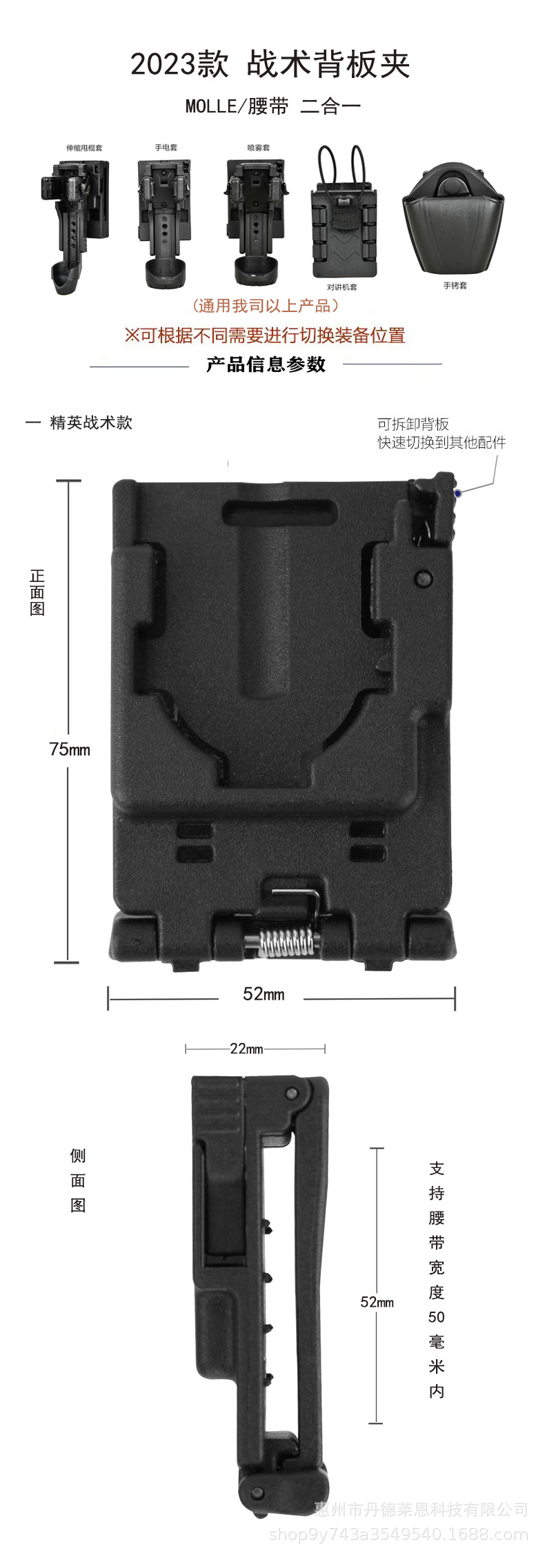 プラスチック鋼のクイックスリーブ戦術モールベルト二合一バックプレートクリップ360度回転安全保障五点セット共通