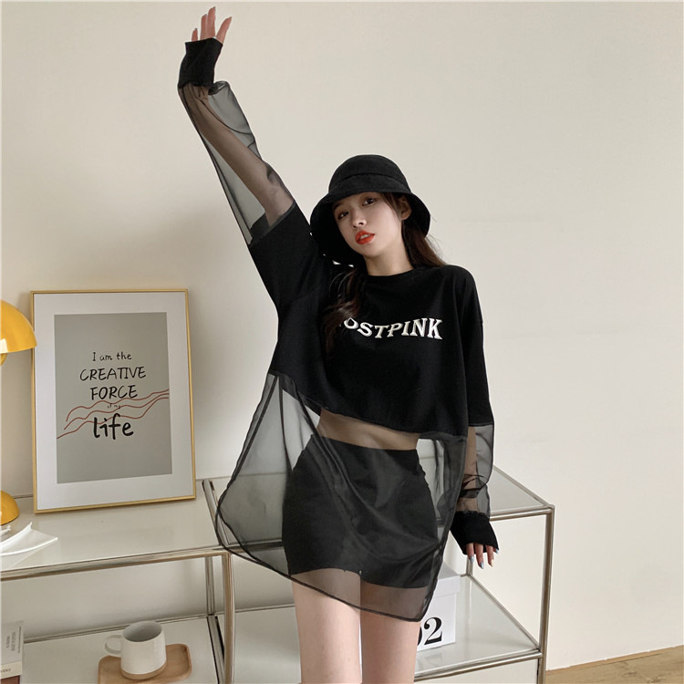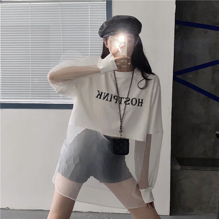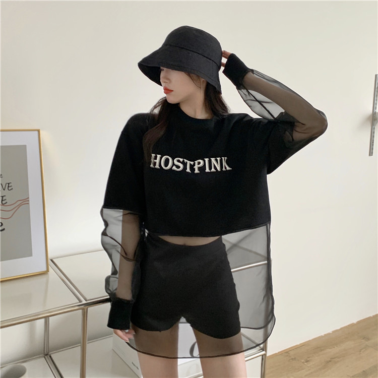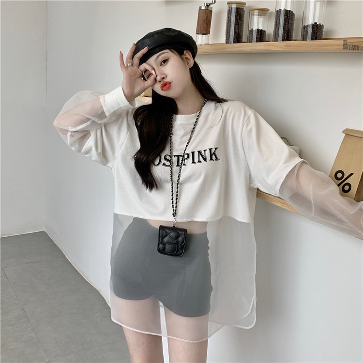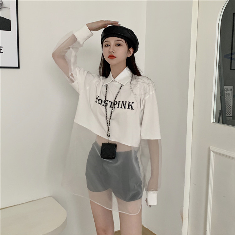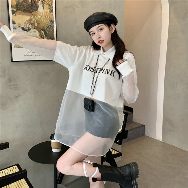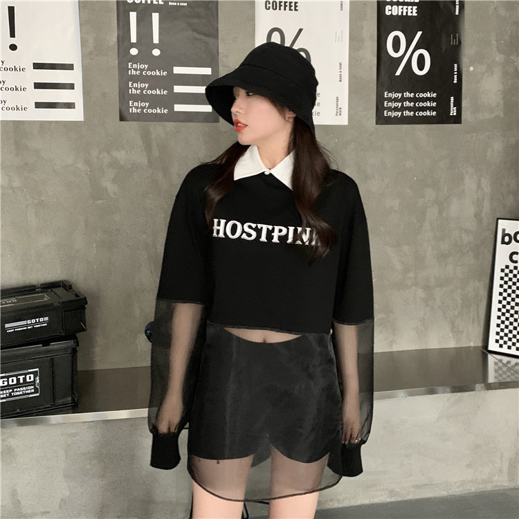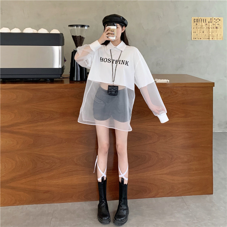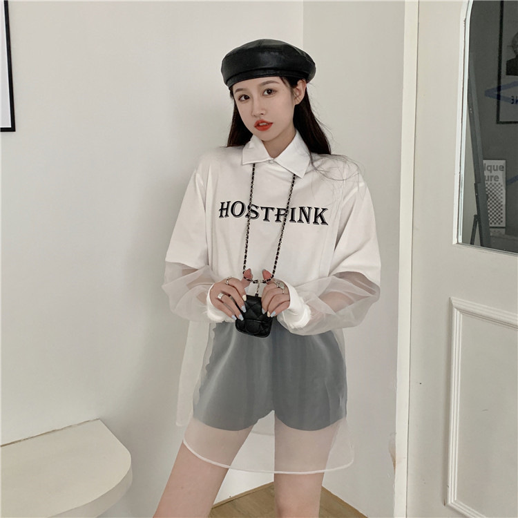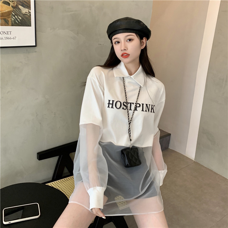 ネットセレブ愛用のレディースファッション、2025年夏新作、透け感のあるメッシュ素材のポロ襟Tシャツ、長袖セクシーなホットガールトップス