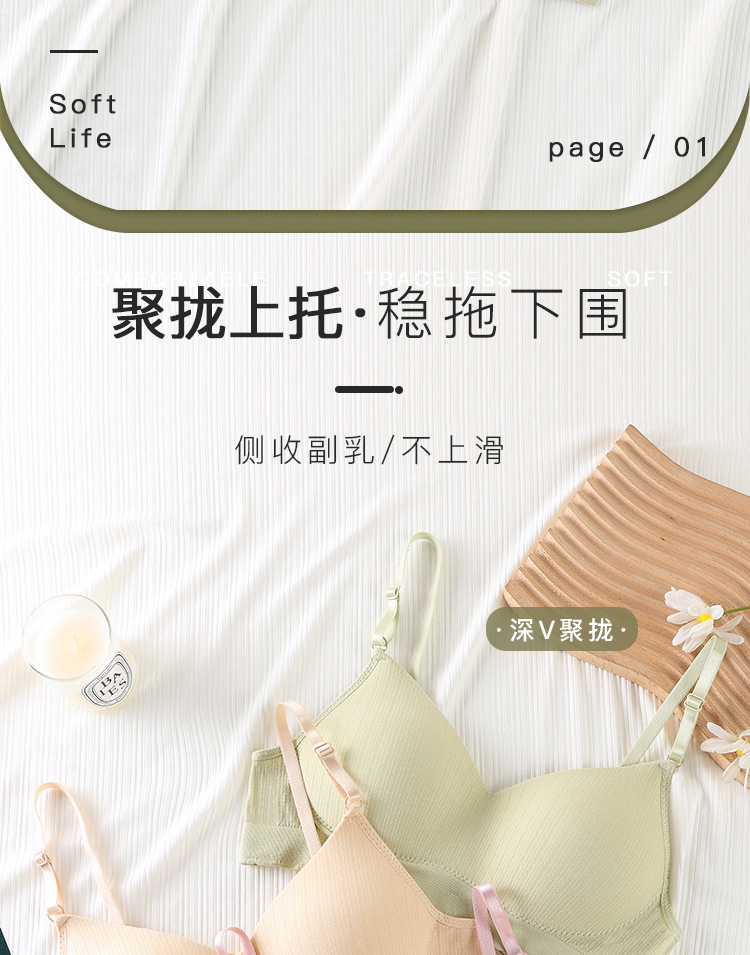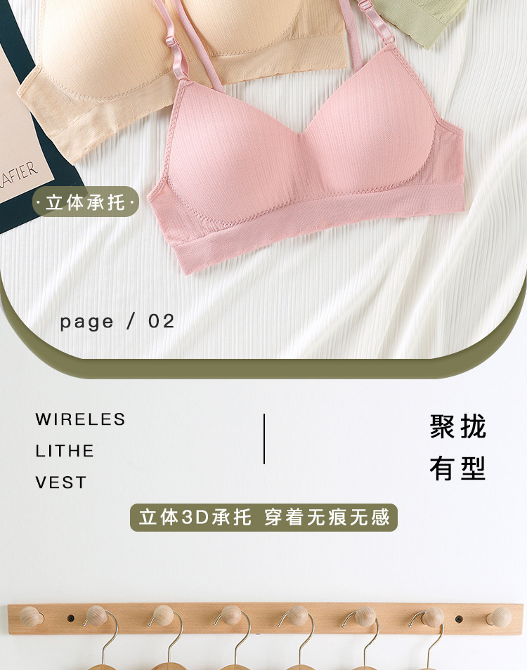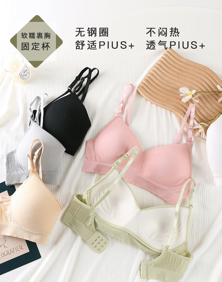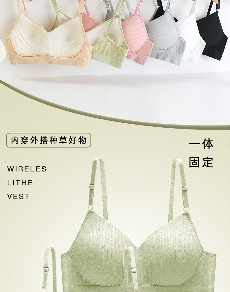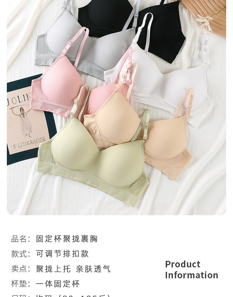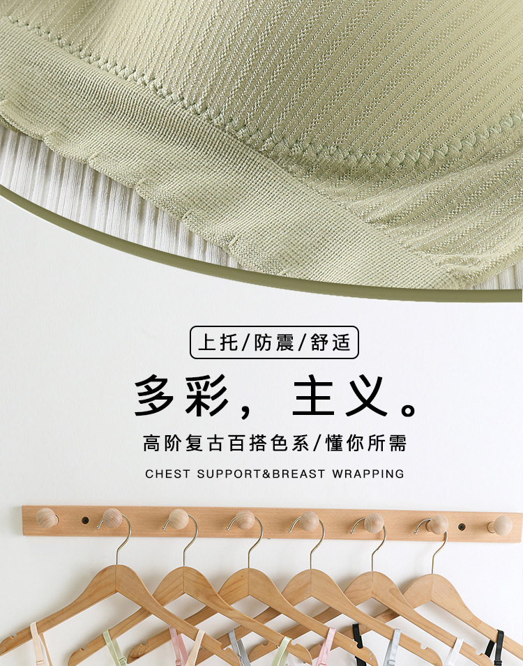 シームレスストラップ固定カップ美背スチールリングなし胸パッド抹胸大きいサイズバックバックルスポーツ下着レディースブラジャーセット