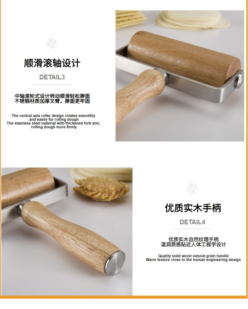 用途:适合于制作饺子皮、馅饼壳等需要精细擀制的面点