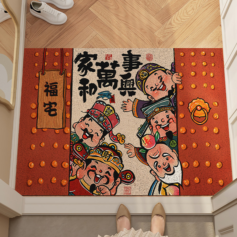 新年の入戸地マットアニメの財神はドアマットに入って汚れに強い耐摩耗性のあるシルクマットを裁断することができます。